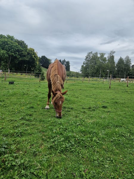 We are looking for a new home for our beloved school horse mare, Cassy. Cassy is incredibly well-behaved under saddle, both with our youngest riders and more advanced equestrians. She is a wonderful leisure horse or companion pony. In handling within the school environment, she shows that she requires more experienced hands, which is not suitable for our children. However, when ridden, she consistently performs reliably and excellently. We wish for Cassy to find a caring home where she will be properly supported and appreciated. She is ideally suited for experienced leisure riders. For us, the well-being of the horse comes before the price.