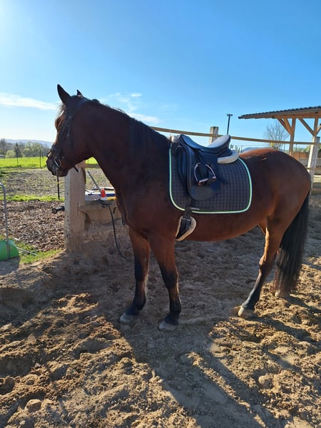 Ich verkaufe hier meine 8 jährige Stute. Sie ist eher das Geländepferd. Im Gelände ist sie brav. Sie kennt longieren und natürlich auch den Reitplatz und die Reithalle. Allerdings macht ihr gemütliches Geländeausreiten am meisten Freude. Sie ist eher ein bisschen ängstlich und braucht daher jemanden der ihr Vertrauen gibt und selber nicht ängstlich ist. Sie muss auf jedenfall noch gearbeitet werden und muss noch einiges lernen. Leider wurde bei ihr Spat festgestellt, was sie aber nicht daran hindert geritten zu werden. Ich schaffe es zeitlich nicht mehr und für ein 8 jähriges Pferd ist es einfach zu wenig nur 2 mal in der Woche geritten zu werden. Platz vor Preis.. (Schutzgebühr). Gerne beantworte ich weitere Fragen.