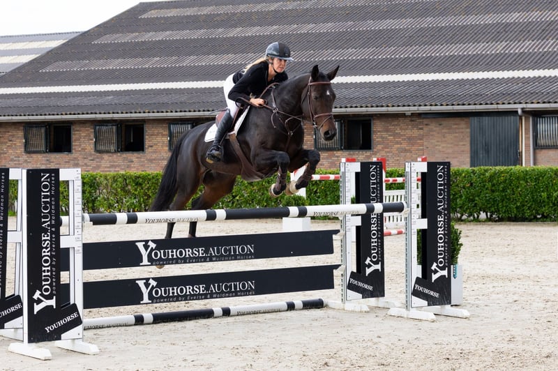 The nine-year-old Cora jumps at 1.20m and 1.30m level and is a sweet mare who is easy to ride and wants to be careful. You very easily get the right distance to the fence with her. Suitable for someone stepping up from ponies to horses or for an amateur. Sire Cocobell (1.40m level) carries the valuable genes of Contender and Cornet Obolensky. Dam Maggie xx is a Thoroughbred mare. https://youhorse.auction/en/auction/Cora-675-COCOBELL-x-RANSOM-OWAR-XX