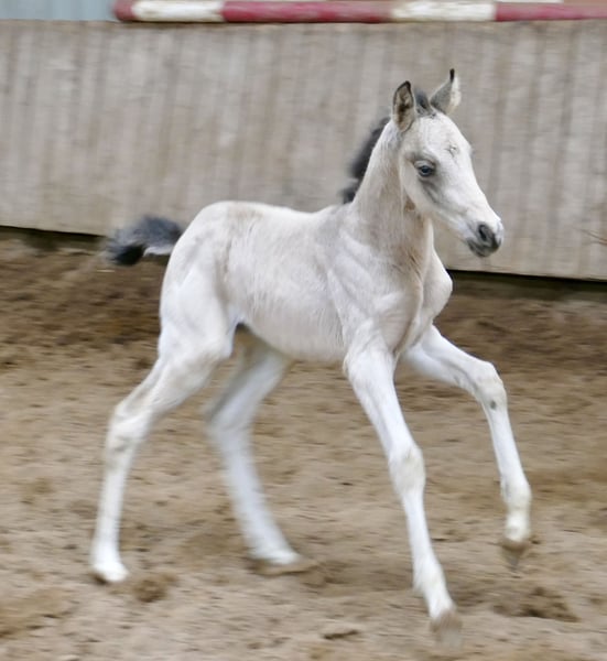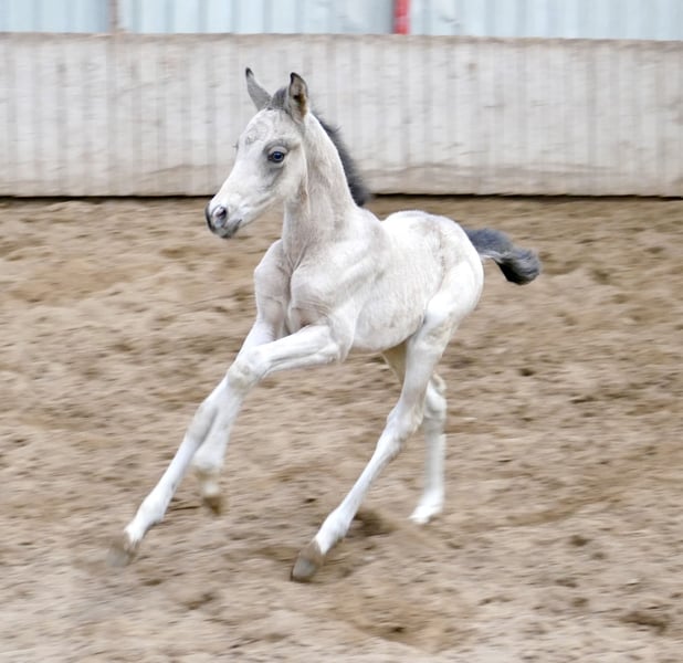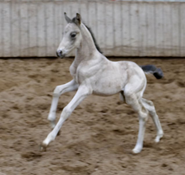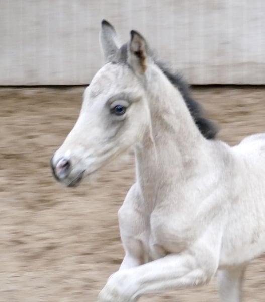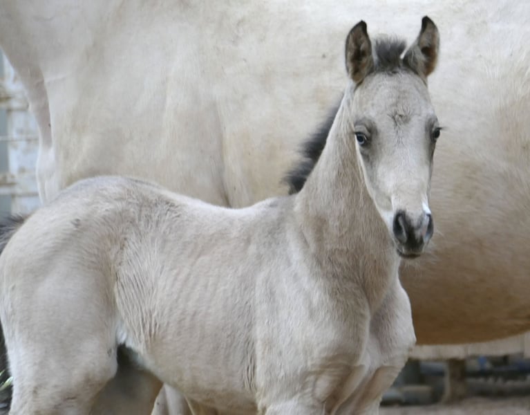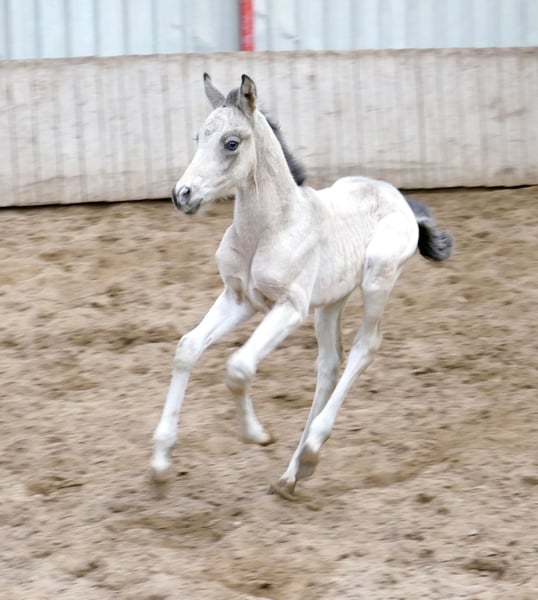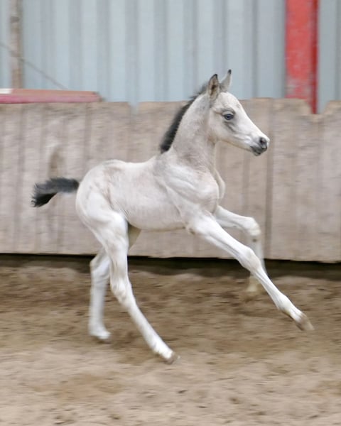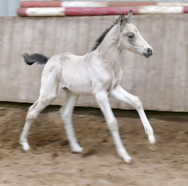 Jeylani A ✨ die himmlische Blume Manche Fohlen fallen auf – und manche bleiben im Kopf. Jeylani A gehört definitiv zur zweiten Kategorie. Dieses außergewöhnliche Buckskin-Stutfohlen fasziniert vom ersten Moment an: mit ihrer besonderen Farbgebung, einer modernen, sportlichen Silhouette und vor allem ihren einzigartigen, ausdrucksstarken Augen, die ihr eine ganz eigene Magie verleihen. Doch nicht nur optisch überzeugt sie – auch ihre Abstammung spricht für sich: J-Nius - Little Indian x Ugano Sitte x Chacco Blue aus der Madonna, der Vollschwester des Hengstes Michelangelo. Hier vereinen sich Vermögen, Vorsicht und Leistungsbereitschaft mit Eleganz und Typ. Jeylani A zeigt sich bereits jetzt mit schwungvollen, lockeren Bewegungen und einer natürlichen Präsenz. Ein Fohlen für Reiter und Züchter, die nicht nur Qualität, sondern auch das gewisse Etwas suchen. 👉 Eine echte Zukunftshoffnung für Springen, Vielseitigkeit oder Zucht.