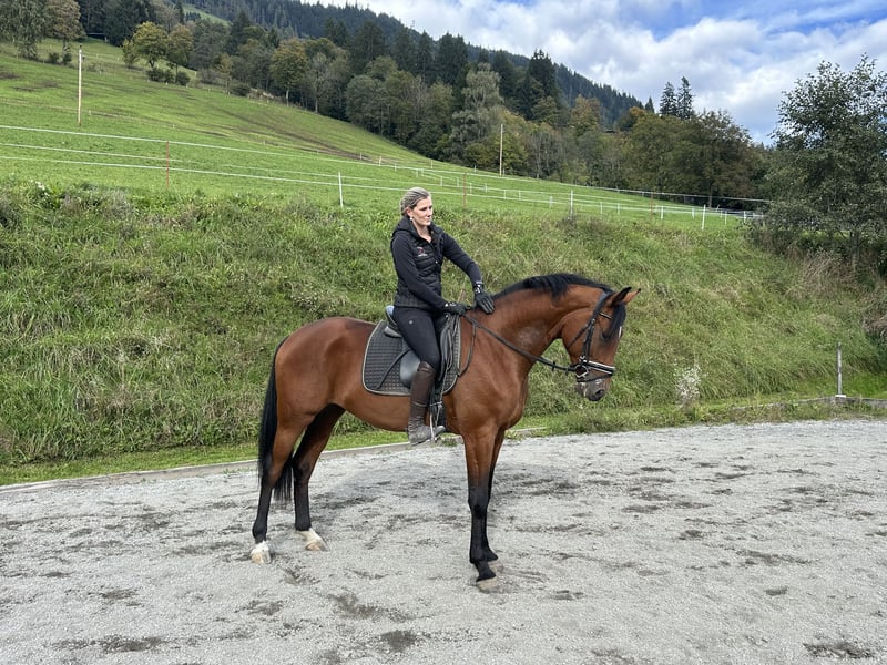 We are looking for a loving new home for our lovable Brooklyn, a 4-year-old brown Warmblood gelding with a height of approximately 169 cm, where he can receive dedicated support. Brooklyn is very well started under saddle and impresses with three above-average basic gaits as well as a great attitude towards daily work. He also shows a lot of talent and overview in jumping, making him suitable for eventing, show jumping, or dressage. Additionally, he has been driven in a pair and demonstrates absolute reliability in this discipline as well. He is very rideable, people-oriented, and has a wonderful, honest character – always eager to do everything right. This makes him not only a sportingly interesting young horse but also a true partner for ambitious leisure riders or those looking to start in competition riding. If you are seriously interested, we look forward to your message or call. Trial rides can be arranged by appointment.