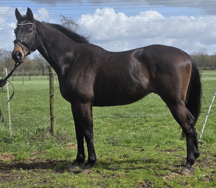 Freddy est un adorable hongre irlandais d'environ 1,67 m, qui devrait encore grandir de 2 à 3 cm. Comme on peut le voir sur les photos, il a été élevé très solidement en Irlande, d'où son pelage tout doux, presque en Teddy ;-) Freddy possède de bonnes qualités de base solides, mais ce qui le distingue vraiment, c’est sa finesse de dressage. C’est un excellent cheval polyvalent pour toutes les disciplines équestres. Il suffit de lui monter et de se sentir bien. Freddy est un cheval très cool, ce qui en ferait aussi un merveilleux compagnon pour la famille. En manège, il est très doux et toujours très détendu. Nous l’amenons régulièrement à la carrière, donc le loading ne pose aucun problème. Freddy connaît le paddock, la pâture 24 heures sur 24, ainsi que le box avec sortie à la pâture. Il s’entend bien avec les autres chevaux. Il dispose d’un examen vétérinaire récent sans aucune anomalie. Pour plus d’informations, n’hésitez pas à appeler : 0177/2721831. Si vous souhaitez voir des vidéos, merci de nous contacter exclusivement via WhatsApp.