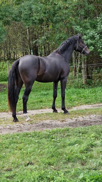 This beautiful 167cm tall gelding is now looking for his new home! Bred and raised with care, he has already proven his quality — as a 3-year-old he was ranking among the best horses in our country of his age group and got invited to our studbook final free jumping inspection. His pedigree can be seen in the photos: his sire is Zangersheide and dam KWPN, with both his grandsires are Grand Prix level. This makes him a horse with true potential for top-level sport. He is sound, healthy, and has never had any injuries or issues. Full X-rays are available and can be sent to serious buyers. Started under saddle at 4, he was easy and willing from the very beginning. This summer, he has already gained solid competition up ta 100cm experience in his age group with 9 starts and 6 clear rounds. He’s a brave and reliable horse who never hesitates at jumps or spooky objects — truly unflappable both at home and at shows. With his calm temperament, he’s safe enough even for a junior rider. He has excellent basic flatwork and easily performs flying changes in canter. This gelding combines talent, temperament, and trainability — the perfect partner for a rider looking to develop a confident and competitive sport horse. Price 20 000eur. Feel free to contact for additional information! Our small breeding stable instagram page @riguldi_tall
