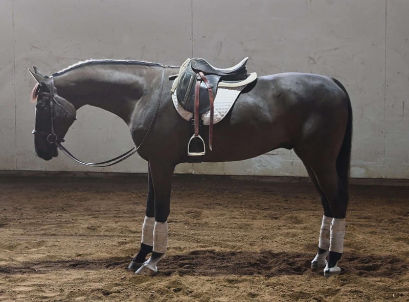 ONLINE-AUKTION Geben Sie Ihre Gebote ab unter www.PlatinumEquineAuction.com Startgebot 3500 $ Die Auktion endet am 2. März 2025 Brauchen Sie einen neuen Sattel? Schauen Sie sich die White Rock Saddles auf unserer Website oder Facebook an! Spring Rock Blackout ist ein 16,1 HH, 2021 Modell, registrierter Niederländischer Kaltblut. Er ist sowohl zum Reiten als auch zum Fahren, einzeln oder im Gespann, ausgebildet. Er wird sowohl im englischen als auch im western Stil geritten und wenn Sie etwas Fancyes suchen, ist er Ihr Pferd! Er hat großes Potenzial im Dressurviereck, da er ein großartiger Bewegungsablauf hat und schnell lernt. Er wurde durch die Stadt geritten und gefahren, über vielbefahrene Straßen, auf Trails, über Bäche und Gräben. Er ist leicht zu fangen, zu satteln, zu bürsten, zu beschlagen und zu baden. Er versteht sich gut mit anderen Pferden auf der Weide und hat keine Stallprobleme. Blackout kann Schritt, Trab und Galopp. Er nimmt beide Führungen, läuft schöne Kreise und ist einfach zu reiten. Er ist auf dem neuesten Stand aller Impfungen und wird gesund verkauft. Für weitere Informationen kontaktieren Sie Silver Star Stables Norman unter 319-284-0001 bei Fragen. Standort: Sturgis, MI. ONLINE-AUKTION Geben Sie Ihre Gebote ab unter www.PlatinumEquineAuction.com Startgebot 3500 $ Die Auktion endet am 2. März 2025 Brauchen Sie einen neuen Sattel? Schauen Sie sich die White Rock Saddles auf unserer Website oder Facebook an!