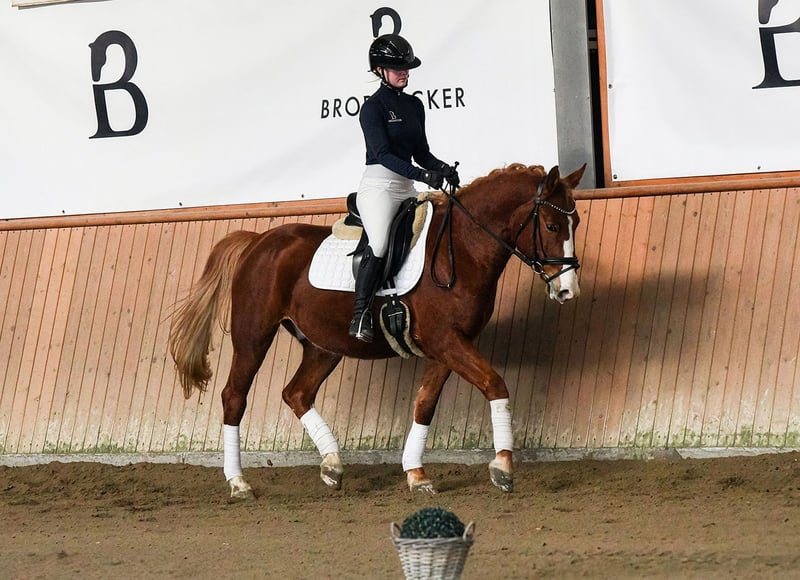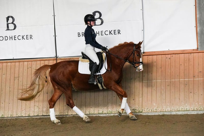 Ernie impresses with his good rideability and clear mind. Despite his young age, he already performs very well and confidently in school exercises with young riders. However, he has developed some minor quirks in handling and grooming. When being ridden, he is very well-behaved and eager to learn. As he is still in development, we believe he would be better suited to a smaller riding operation or a private owner with sufficient horse experience. For further questions, please feel free to contact us by phone at +49 172 8733686.