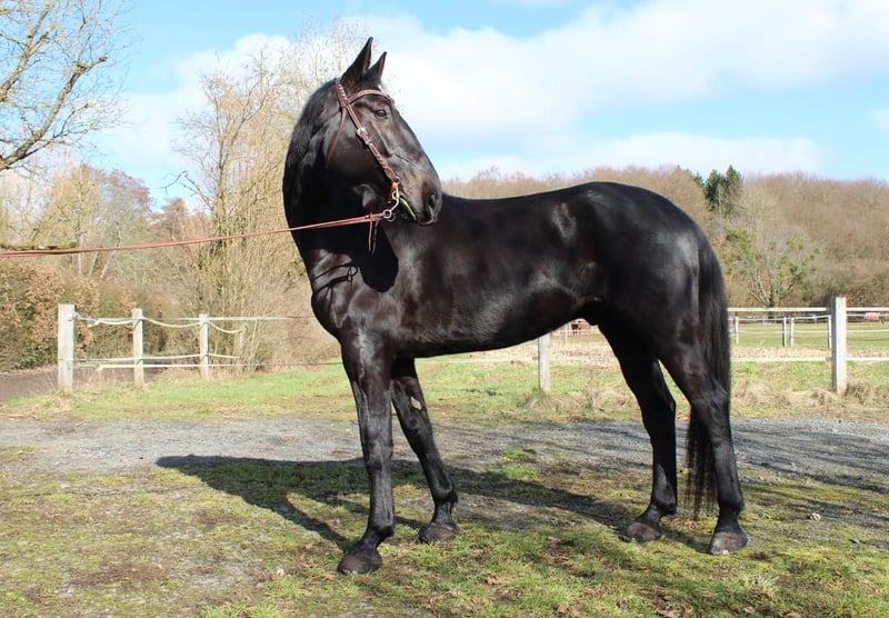 We would like to offer our impressive Nonius gelding, born in 2019. Our elegant black pearl impresses not only with his height of 17.5 hands but also with his promising movement and friendly nature. With his attentive and eager-to-learn character, as well as his sensitivity, he is the ideal partner for experienced riders who appreciate quality and willingness to work. His typical appearance and gentle temperament make him a wonderful companion. Our gelding has a solid foundation in Western riding and shows great potential for further training in dressage. He is suitable for experienced riders who are ready to develop his talent further. Please note that a veterinary report documents early signs of arthritis (X-ray images from 2025, incidental finding). However, no lameness is present, and he is kept both in a paddock and in a stable. If you have any questions or need further information, we are happy to assist you at any time. We wish our "little" friend a loving new home! This is not a distressed sale! We simply want to give him the opportunity to continue developing in his discipline, as we are pursuing different goals in the Western riding area.