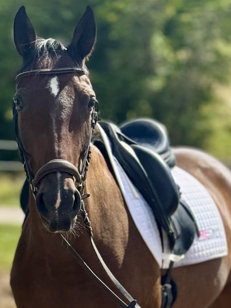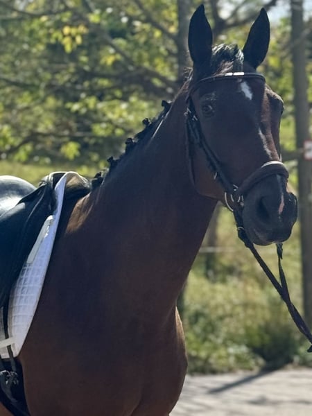 Dieser imponierende 7 jährige ca. 160 cm große Wallach, in eleganter Aufmachung, ist für jeden Spaß zu haben! Er stellt den perfekten Allrounder dar, ob Dressurarbeit, Springen, Gelände, Wanderreiten, Freiarbeit oder sogar gemeinsam Schwimmen gehen, er gibt stets 120% für seinen Menschen! Zudem hat er einen Charakter aus Gold, der durch absolute Unerschrockenheit und Zuneigung für seine Bezugsperson, strahlt! Aufgrund der professionellen und vielseitigen Grundausbildung und seines ehrlichen Wesens auch für Kinder und schwächere Reiter geeignet! Kerngesund, schmiede- und verladefromm, keine Unarten! ➡️ Bei Bedarf bieten wir unseren Kunden eine Übergangszeit mit Beritt und Reitunterricht an. Melden Sie sich gerne jederzeit bei weiteren Fragen oder um ein persönliches Kennenlernen zu vereinbaren: 015202833968 ➡️ Beachten Sie bitte, dass wir zum Schutz unserer Pferde, für das Vorstellen und Probereiten eine Gebühr von 45€ berechnen. ➡️ Weitere Informationen finden Sie auch auf unseren Socialmedia Kanälen: Zum Insta-Profil: PREcaroPferde https://www.instagram.com/precaropferde?igsh=MThzaDBmNTNpdW1mMg%3D%3D&utm_source=qr Zum Facebook-Profil: Carolin Nesarajah https://www.facebook.com/share/1AyDKVaDnU/?mibextid=wwXIfr