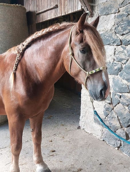 Dezsö ist ein im Mai 2018 geborener Wallach mit einem Stockmaß von ca. 1,60m. Er ist ein absoluter Schmuser und ein sehr neugieriger Freizeitpartner. Im Gelände ist er in allen Gangarten geritten, eher unerschrocken und vom Charakter eher ruhig. Der Wallach überzeugt mit seinem freundlichen Wesen, seinem hübschen Aussehen und seiner angenehmen Art im Umgang. Er lässt sich problemlos überall anfassen, putzen, longieren und rundherum Arbeiten. Beim Hufschmied ist er regelmäßig und absolut brav. Er wird 24/7 draußen auf großen Weiden gehalten, ist zaunsicher und war noch nie krank. - Verladefrom - Barhuf - AKU bei Kostenübernahme möglich Dezsö steht im täglichen Auslauf mit einem anderen Wallach und verträgt sich mit diesem sehr gut. Durch einige private Veränderungen und Schwangerschaft wurde er jetzt schon länger nicht mehr geritten. Mit beim Kauf dabei sein komplettes Zubehör: - Sattel Barefoot London Gr. 1 mit jeglichem Zubehör für den Sattel - Trense mit Glitzersteinbesatz - mehere Halfter - Abschwitzdecke Wenn du ein solch besonderes Pferd gerne kennenlernen möchtest, dann melde dich für eine Terminvereinbarung.