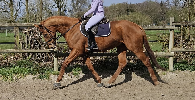 Rumi is an approximately 167 cm tall Irish Sport Horse gelding. This reliable and loyal leisure partner is perfect for the whole family, and he would also make an excellent schoolmaster. Rumi is a pleasure to ride; he is familiar with work in the arena as well as trail riding in his homeland. He is also accustomed to solid jumps and approaches them with great enthusiasm. In handling, Rumi is a sweetheart—gentle and easygoing in every respect. He is a straightforward and uncomplicated horse. Currently, he spends a lot of time outdoors, making him ideally suited for turnout in a herd. Rumi gets along well with all other horses. He has a recent clinical examination with no findings. If you are interested in him, we look forward to your call at: 0177/2721831.