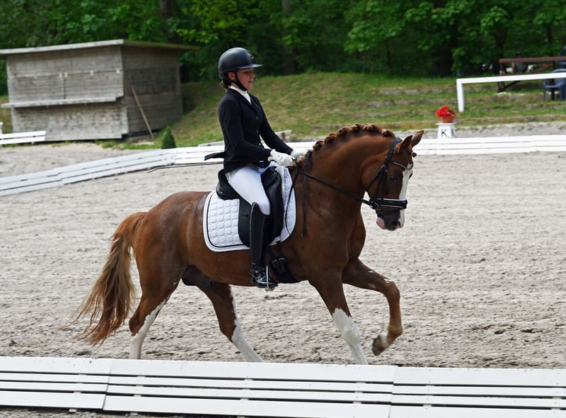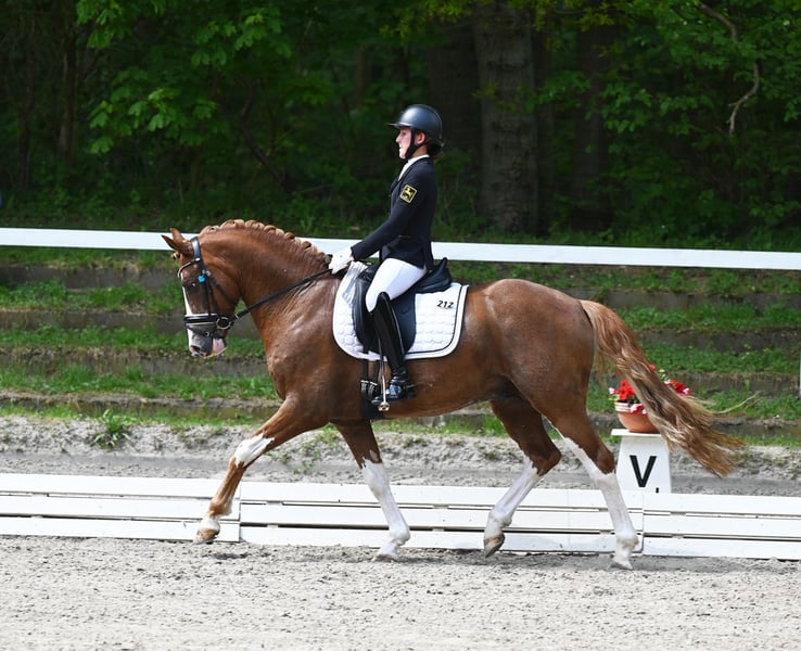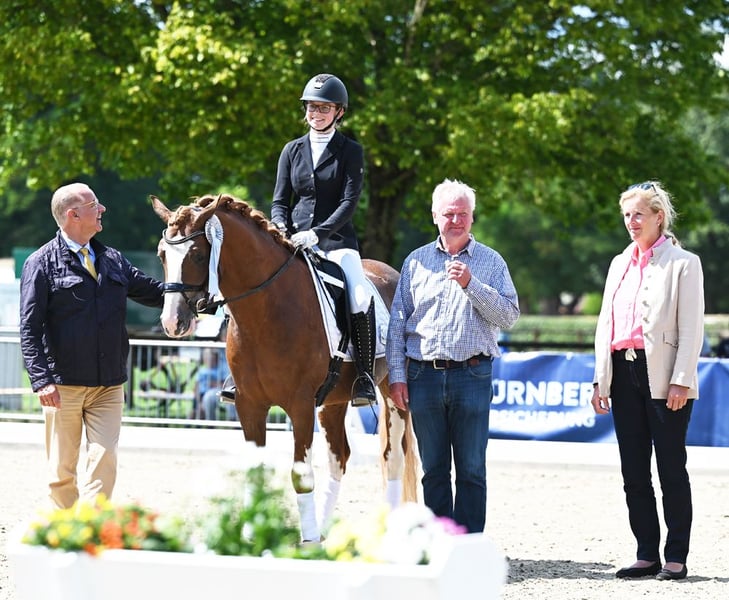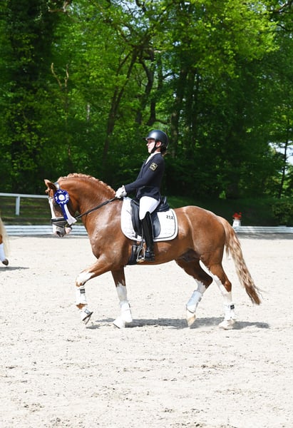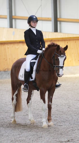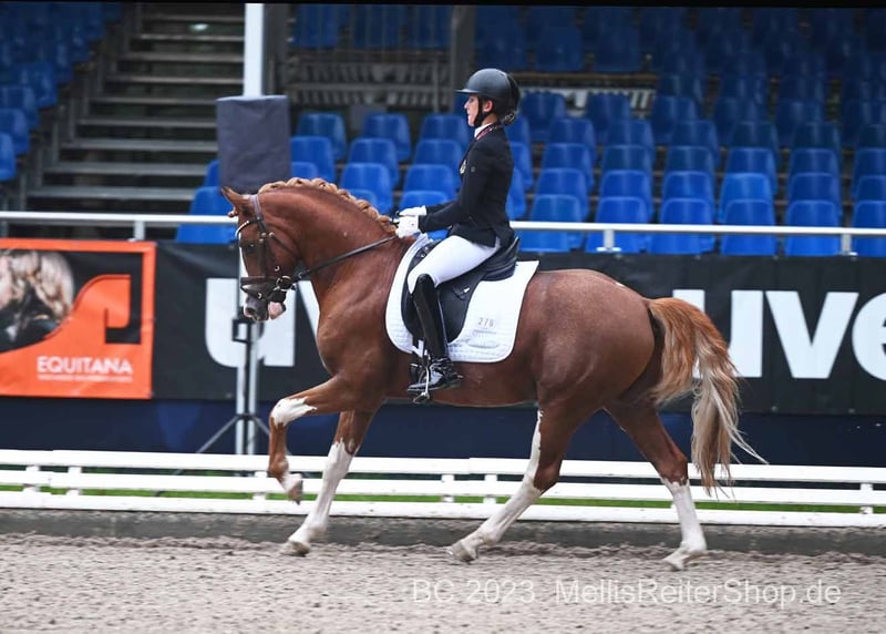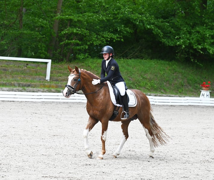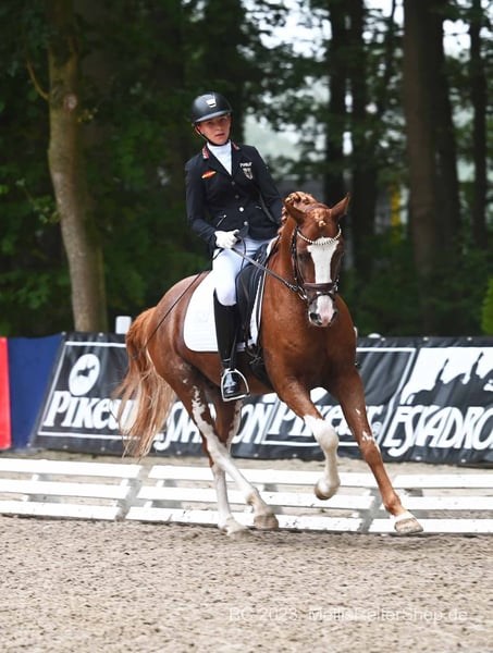 Kasztanowaty ogier urodzony w 2020 roku w Verden, Verband Hannover, księga ogierów I Zarejestrowany przez ZfdP – Związek Hodowców Niemieckich Koni Wzrost: 146 cm, wolny od choroby CA Składka na krycie: 300 € za jedną porcję (ok. 5-6 strzyków). Przy kolejnych kryciach z tej samej porcji, naliczana jest dodatkowa opłata 300 € za każdą kolejną ciążę; w przeciwnym razie nie wystawia się świadectwa krycia. Przy zamówieniu kolejnej dawki nasienia w tym samym roku dla tej samej klaczy, otrzymują Państwo rabat 100 €. Wysyłka przez Freeze & Breed. Prosimy o wcześniejsze zamówienie i przechowywanie u weterynarza, w stacji lub klinice. 2021 – 3. miejsce na Mistrzostwach Kraju, udział w Mistrzostwach Niemiec – zwycięzca konkursu na konia sportowego 2022 – plasuje się w konkursach na konia do ujeżdżenia A, na poziomie Eignungsprüfung oraz w konkursach na konia sportowego A i L – VIZELANDESCHAMPION i zakwalifikowany do Mistrzostw Niemiec – próba dzielności ogierów z wynikiem 7,96 2023 – zakwalifikowany do Mistrzostw Niemiec z Lilly von Helldorf, zwycięzca kwalifikacji – zwycięzca konkursu na konia do ujeżdżenia A, plasuje się w konkursach L 2024 – plasuje się w konkursie na konia do ujeżdżenia L z Laurą Schierholz 2024 – sprzedany młodej jeźdźczyni w wieku 8 lat – zakwalifikowany do Mistrzostw Niemiec z wynikiem 8,14 w Rastede pod opieką Elly Thielkes 2025 – osiągnięcia z młodą jeźdźczynią i w zaprzegu Dior to dwukrotnie utalentowany ogier marzenie, nie tylko ze względu na swoją urodę, ale także w zachowaniu i charakterze. Jest po prostu niesamowicie spokojny! Już jako źrebię chętnie brał udział w zabawach i uwielbia podesty, plandeki oraz pracę na ziemi, co można zobaczyć na zdjęciach poniżej. Jego ciekawość i odwaga, połączone z elastycznymi i przestrzennymi ruchami, wskazują na wszechstronną karierę. Chętnie umożliwimy Państwu odwiedzenie jego rodziny po wcześniejszym umówieniu. Od rodzeństwa po matkę, babcię, ciocie i niezliczone kuzynki ;-)
