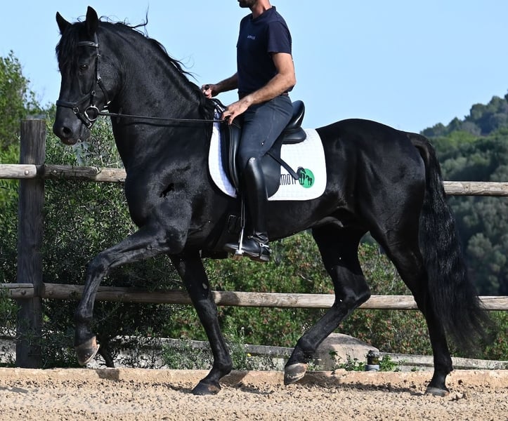 Este semental Menorquín de pura raza, nacido en 2010, es un compañero versátil. Es un caballero cariñoso y relajado, que siempre quiere complacer y es muy cuidadoso en su trato con los humanos. Físicamente está en plena forma y en la mejor edad, pero tiene la ventaja de no tener las travesuras de un joven, lo que permite disfrutar de todo con él. En el manejo no muestra comportamientos de semental y se comporta de manera ejemplar. Bajo la silla, está completamente concentrado en el trabajo y después se puede disfrutar de una sesión de entrenamiento en paso con riendas sueltas. Gracias a su experiencia en fiestas, es prácticamente inquebrantable y no hay nada que lo perturbe, sin importar a dónde lo lleve la salida. Aunque ya ha cubierto y tiene descendencia, sigue siendo un verdadero caballero incluso en presencia de yeguas. Para aquellos que no pueden tener un semental, se puede organizar la castración sin problema. Se monta con una mano en la técnica de Doma Menorquina local, pero también conoce el estilo de monta inglesa con dos manos en bocado de agua. Su repertorio incluye, gracias a su experiencia en fiestas, el bot, así como levantarse y andar sobre las patas traseras. Sin embargo, quienes no deseen esto pueden estar completamente tranquilos, ya que está tan bien educado que no se pueden "presionar botones equivocados" y no lo hará involuntariamente. Para aquellos que deseen aprender el bot, estaré encantado de explicarles cómo hacerlo ;) Le gusta salir al campo, tanto solo como acompañado de otros caballos (¡también yeguas!) y quienes disfruten de lecciones pueden hacer con él el paso español. Es un amigo ideal, fino y barroco, con quien se pueden disfrutar muchos años hermosos juntos. Su alzada es de 155 cm, lo que lo hace muy compacto. El precio es acorde a la calidad. IVA deducible. Actualmente se encuentra en Menorca. Videos y pedigree disponibles a solicitud. Con gusto organizo una revisión veterinaria, castración, entrenamiento, transporte o incluso su viaje, si desea venir a verlo personalmente. Más detalles en mi página o en conversación. ¡Saludos desde España!