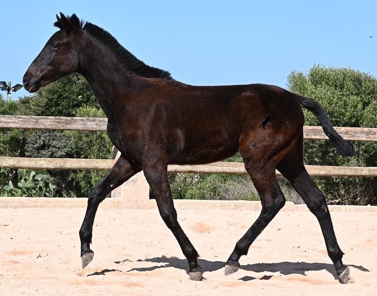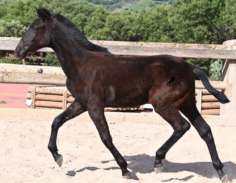 This purebred Menorquin stallion, born in 2024, is a truly adorable little guy. He dances elegantly across the arena, and even though he is currently incredibly sweet, he is sure to become an elegant representative of his breed! Thus, one can currently enjoy this cutie and at the same time look forward to what he will become. With his movement and very compact conformation, he will certainly be an ideal candidate for Working Equitation, Western riding, and of course as a leisure horse. He enjoys his foal life in the herd, is kept in a robust environment 24 hours a day on hard ground, and happily marches many kilometers with his buddies. As such, he is robust, has good hoof quality, and clear legs. In his veins flow old bloodlines of the Menorquin, which is reflected in his subtle knee movement, and he is likely not to be too tall—his expected final height is around 156 cm. He is halter-trained and ready to embark on the big journey—hopefully to you! He is currently located in Menorca! Videos and pedigree available upon request. I would be happy to organize an inspection, transport, or your journey should you wish to come see him in person. Details can be found on my page or in conversation. Greetings from Spain!