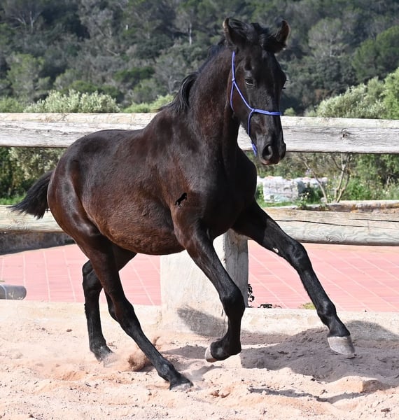 Dieser 2024 geborene, reinrassige Menorquinhengst, ist ein eleganter Youngster mit viel Potenzial! Lebensfroh, wie man es sich von einem Jungpferd wünscht, vertrauensvoll dem Menschen gegenüber und ein Rohdiamant, der später in vielen Sparten glänzen kann. Denn er hat sehr korrekte Bewegungen, ist sehr wendig, stark in der Hinterhand und harmonisch im Gebäude. Somit wird er für die Working Equitation, Dressur, Vielseitigkeit und natürlich als Freizeitpferd, bestimmt ein Kandidat, der Freude machen wird! Sein Papa ist ein herausragender Hengst, denn 3 (!) seiner Nachfahren wurden RASSECHAMPION! Die Mama bringt Championblut mit in die Abstammung und in der Kombination, wird er bestimmt später auch für Züchter interessant. Er genießt das Fohlenleben in der Herde, steht 24h in Robusthaltung auf harten Böden und marschiert spielend viele Kilometer mit seinen Kumpels. Somit ist er robust, hat gute Hufqualität und klare Beine. Sein zu erwartendes Endmaß liegt um die 162cm und er wird noch barocker im Exterieur. Er ist halfterführig und jederzeit bereit, die große Reise anzutreten-hoffentlich zu dir ;) Aktuell steht er auf Menorca! Videos und Abstammung gerne auf Anfrage. Gerne organisiere ich vor Ort eine AKU, Transport oder auch ihre Reise, sollten Sie persönlich zum Anschauen kommen. Details dazu gerne auf meiner Seite oder im Gespräch. Saludos aus Spanien