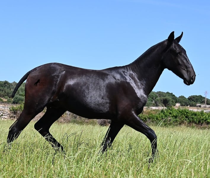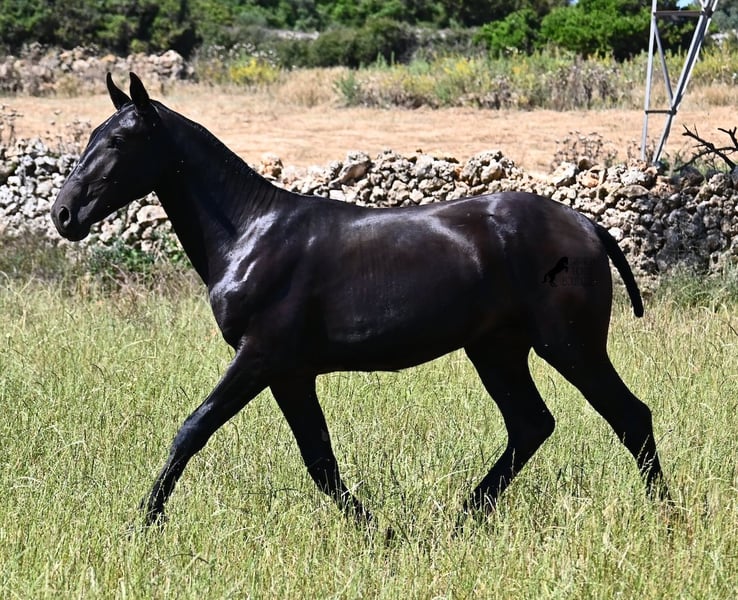 Este semental Menorquín de pura raza, nacido en primavera de 2024, es un representante de la raza muy cariñoso. Su suave mirada ya lo revela con esa expresión tan tierna :) Su padre ha producido varios campeones de raza, por lo que tiene un linaje exquisito y también por parte materna encontramos un campeón de raza en sus ancestros. Proviene de antiguas líneas del Menorquín, que son conocidas por producir caballos resistentes y versátiles. Esto se nota en él, ya que tiene un gran movimiento, es muy ágil y flexible, tiene un buen trasero y se desarrollará con un bonito tipo barroco. En grandes praderas, disfruta de la vida de potro con su amigo, lo que lo ha socializado muy bien. Gracias a las muchas rocas y suelos duros, tiene una excelente calidad de casco y ya es seguro en sus pasos. Es muy educado en el manejo, ya ha conocido el box y es muy amigable y afectuoso con las personas. Más adelante, será interesante tanto como caballo de monta como de tiro, ¡ya que los Menorquines son muy versátiles! Se espera que su altura final sea alrededor de 165 cm. Si deseas recogerlo más tarde, se puede organizar un lugar de crianza para él. Videos y pedigree disponibles a solicitud. Su ubicación es Menorca. Con gusto organizo en el lugar una revisión veterinaria para potros, transporte o también su viaje, en caso de que desee venir a verlo personalmente. Para más detalles, consulte mi página o hablemos. Saludos desde España.