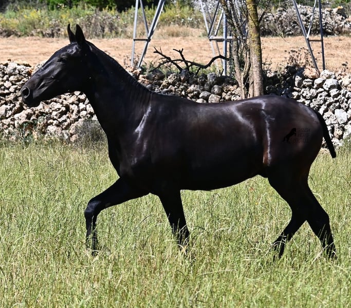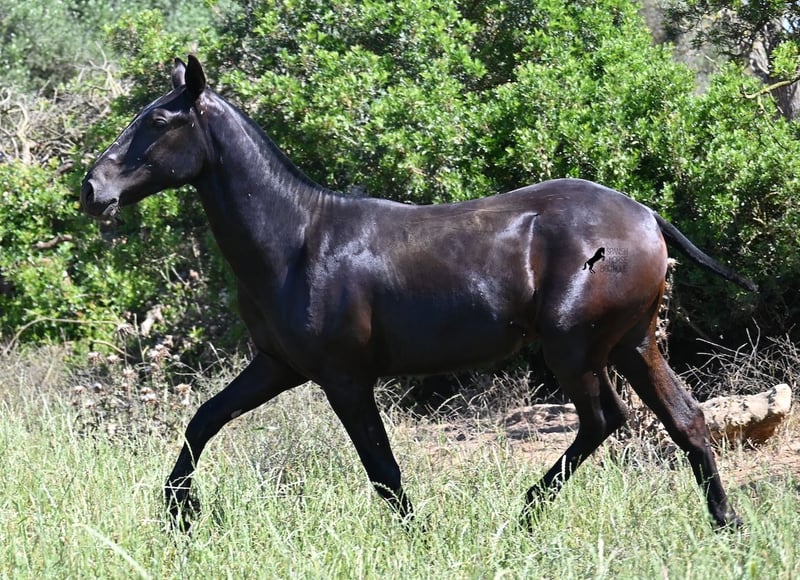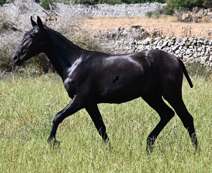Ce pur-sang Menorquin, né au printemps 2024, est un représentant de la race très affectueux. Son regard doux et son air câlin en témoignent déjà :) Son père a produit plusieurs champions de race, il a donc une lignée exquise et nous trouvons également un champion de race du côté maternel dans ses ancêtres. Il provient de vieilles lignées de Menorquin, connues pour leurs chevaux endurants et polyvalents. Cela se ressent chez lui, car il a un excellent mouvement, est très souple et agile, possède un bon arrière-train et deviendra encore plus baroque. Dans de grands pâturages, il peut profiter de la vie de jeune cheval avec son ami, ce qui lui permet d'être parfaitement socialisé. Grâce aux nombreuses roches et aux sols durs, il a une excellente qualité de sabot et est déjà sûr de ses pas. En manipulation, il est très bien élevé, il a déjà découvert son box et il est très amical et attaché aux humains. Plus tard, il sera intéressant tant comme cheval de monte que comme cheval de trait, car les Menorquin sont très polyvalents ! Sa taille finale prévue est d'environ 165 cm. Si vous souhaitez le récupérer plus tard, un endroit pour son élevage peut être organisé. Des vidéos et des informations sur sa lignée sont disponibles sur demande. Son emplacement est à Minorque. Je peux également organiser sur place un examen vétérinaire pour les poulains, le transport ou votre voyage, si vous souhaitez venir le voir en personne. Pour plus de détails, n'hésitez pas à consulter ma page ou à en discuter. Salutations d'Espagne.