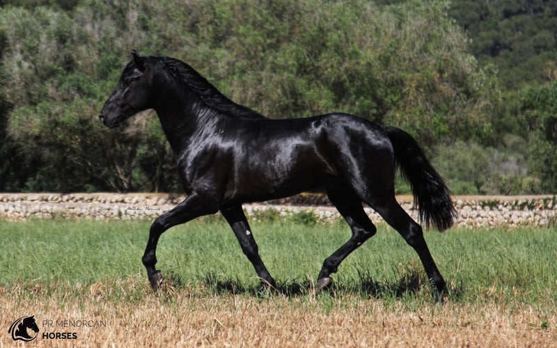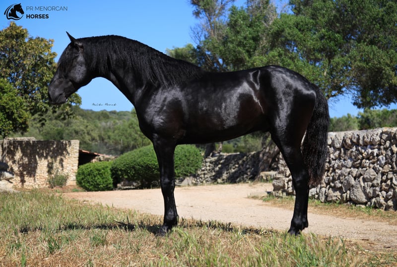Stunning 6 y.o. Pura Raza Menorquina awarded stallion. He is completely black, measures approximately 160cm, although it is possible that he grows a little more. He has been raised on a stud farm of breed champions. He is the son of awarded horses and is approved as a breeding stallion, so he would be a good choice for someone looking for a good stud. He has a medium dressage level including lateral work, Spanish walk and he is learning piaffe, flying changes and the traditional "bot" He can be ridden both in dressage and Menorcan dressage. He has participated in the Menorcan Breed Horse Championship, obtaining several awards. He also has dressage experience where he also won some awards. He lives stabled with other stallions and he is dewormed and vaccinated regularly. If you think he is the right horse for you, do not hesitate to contact us. If you can come to Menorca, you can visit it yourself. If that is not possible, we can do the entire process online. I can arrange a PPE, quarantine and transport worldwide. Located in Minorca DM for more information and videos ;) Greetings!
