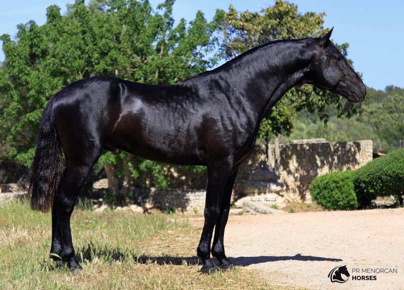 Joven semental de 6 años de Pura Raza Menorquina, completamente negro, mide aproximadamente 160cm, aunque es posible que crezca un poco mas. Ha sido criado en una ganadería de campeones de raza. Él es hijo de caballos premiados y es apto como reproductor, por lo que sería una buena opción para alguien que esté buscando un caballo de cría. Esta iniciado en doma clásica y doma menorquina. Tiene un nivel medio de doma, incluyendo trabajos laterales, paso español y esta aprendiendo piaffe, cambios de pie y el tradicional "bot". Ha participado en el concurso de Caballos de Raza Menorquina, clasificado siempre entre los 3 primeros. Vive estabulado junto a otros sementales, es desparasitado y vacunado regularmente. Si crees que él es el caballo adecuado para ti, no dudes en contactar con nosotros. Si puedes venir a Menorca, puedes visitarlo tu mismo. Si eso no es posible, podemos hacer todo el proceso online. Puedo organizar un examen veterinario, cuarentena y transporte. Ubicado en Menorca Más información y videos por privado ;) Saludos!