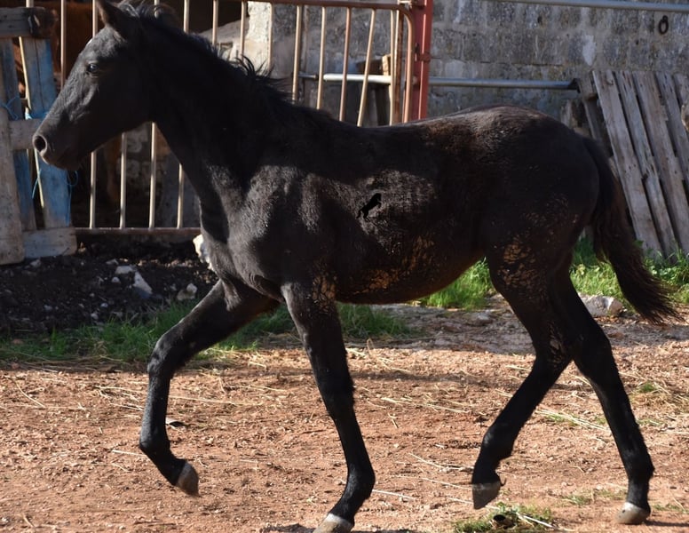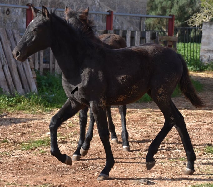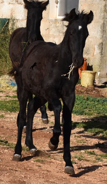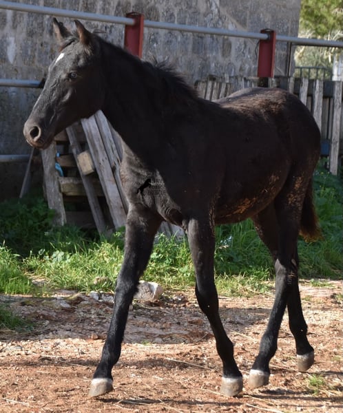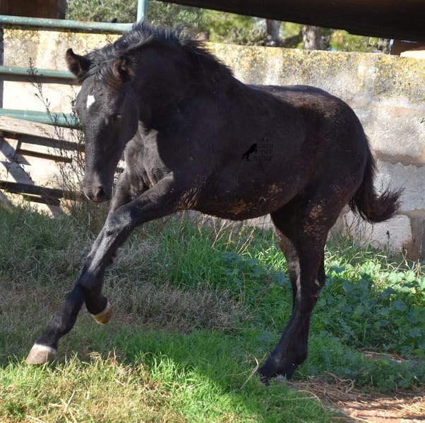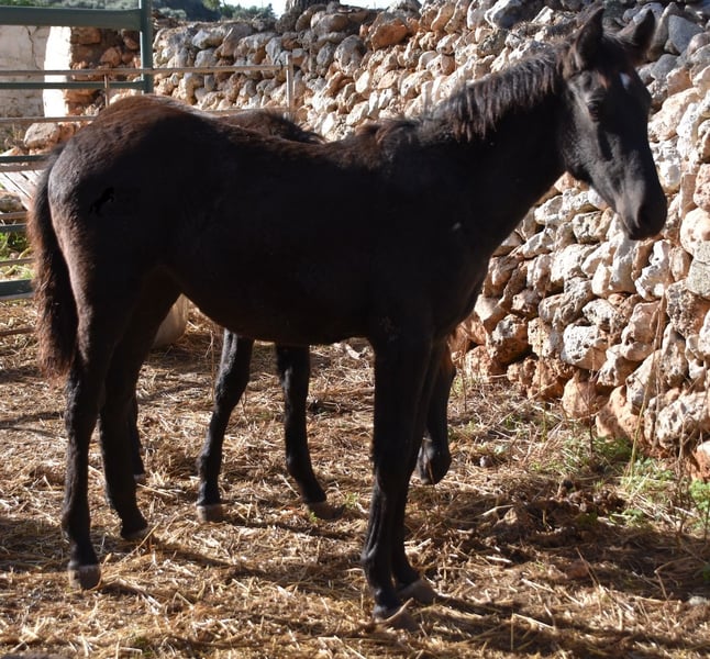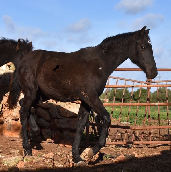 Born in the summer of 2024, this purebred Menorquin mare with full paper is a very cute young lady. She has a shining star and her dad is a multiple award winner for his awards in the local Doma Menorquina. Her paternal grandfather is one of the 3 elite stallions of the breed, with a lot of knee action, which has also come through in her. She is very compact and her expected final height is around 157cm. She is weaned together with her foal friend and is familiar with both the robust stall and the box. She is halter-trained and as her passport has already been issued, she is ready to move to her forever home. For today's steadily increasing price range of the Menorquin, she is also very affordable ;) If you want to get her later, a breeding place can be organized for her. Videos and pedigree on request. Her location is Menorca. I would be happy to organize a foal AKU on site, transport or even your trip, should you come to see her in person. Details can be found on my website or in conversation. Saludos from Spain
