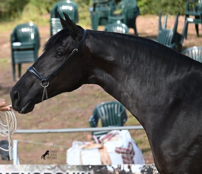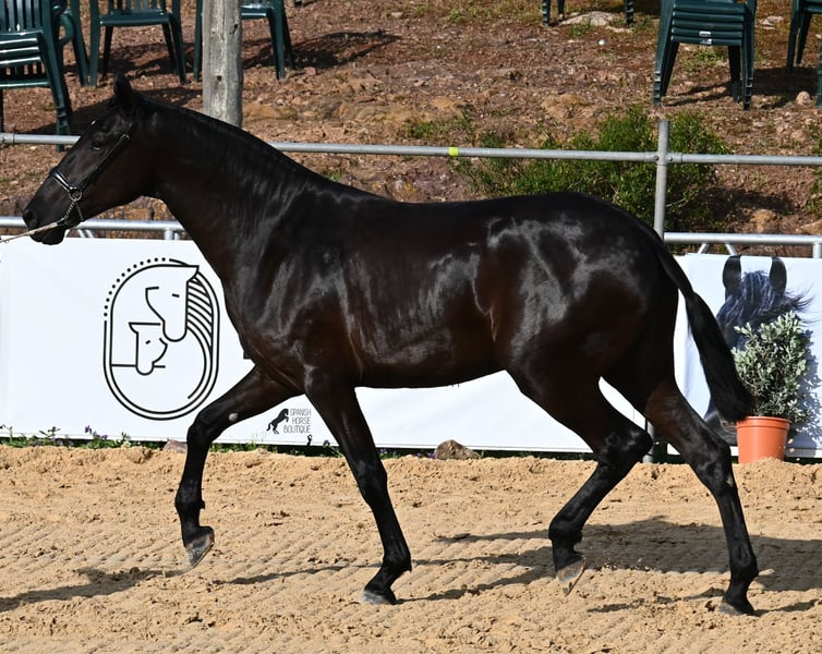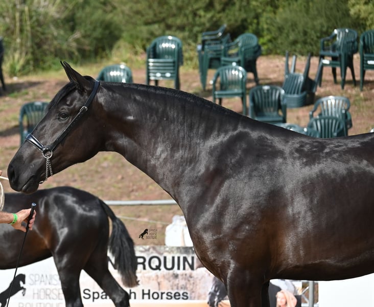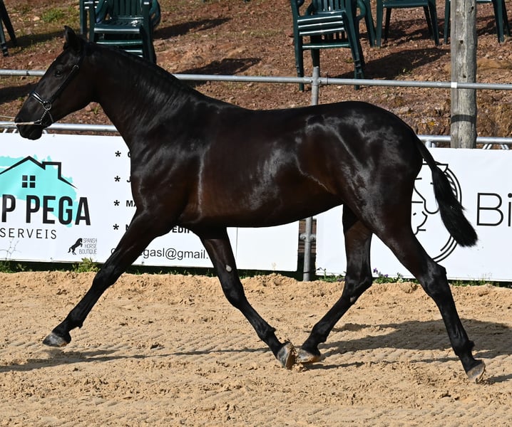This 2023-born Menorquin mare is truly an exclusive representative of her breed from a top home! Her father is one of only 3 ELITE stallions of the breed, known for passing on good movement as well as size, and this young lady is expected to reach a final height of around 165cm! Her mother carries very old lines of the Menorquin, which are known for their endurance and hardworking nature. This jewel of a filly was presented at this year's breeding show of the Menorquin, and she is already well-acquainted with lunging in a halter, being in new places, is super easy to load (even in a double trailer when she has to enter second), knows hoof care, and of course the basics of grooming and bathing. She lives 24/7 in a robust environment on many hectares of land in a herd of mares of all ages, making her well-socialized and trained. The ideal upbringing! She also knows the stable, should she need to go inside. On her forehead, she has a star that she hides under her forelock. Traditionally Spanish, she is clipped as a mare, but of course, her mane will grow back if not cut further ;) Price according to quality. Videos & pedigree available upon request. Her location is Menorca. I would be happy to organize a foal vet check, transport, or your travel arrangements should you wish to come and see her in person. Details can be found on my page or in conversation. Greetings from Spain!