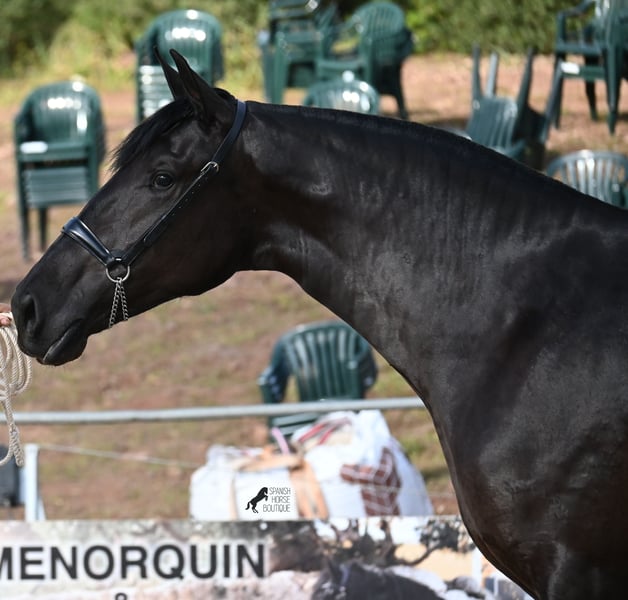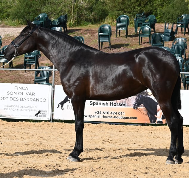 Deze in 2023 geboren Menorquin merrie is werkelijk een exclusieve vertegenwoordiger van haar ras uit een uitstekend thuis! Haar vader is een van de slechts 3 ELITE hengsten van het ras, die zowel goede beweging als grootte doorgeeft, en de jonge dame zal naar verwachting een eindmaat van ongeveer 165 cm bereiken! Haar moeder draagt zeer oude lijnen van de Menorquin in zich, die staan voor volhardende en hardwerkende paarden. Dit juweeltje werd dit jaar gepresenteerd op de fokshow van de Menorquin en is daardoor al goed bekend met het longeren aan het halster, het zijn op nieuwe locaties, is super braaf bij het laden (ook in de dubbele trailer, als ze als tweede moet instappen), kent de hoefverzorging en natuurlijk de basis van borstelen en douchen. Ze leeft 24 uur per dag in een robuuste huisvesting op vele hectaren grond in een merrie groep van alle leeftijden en is daardoor uitstekend gesocialiseerd en opgevoed. De ideale opfok! De stal kent ze ook, voor het geval ze naar binnen moet. Op haar voorhoofd heeft ze een ster, die ze onder haar manen verbergt. Traditioneel Spaans is ze als merrie geschoren, maar uiteraard groeit de manen weer terug als je het niet verder knipt ;) Prijs in overeenstemming met de kwaliteit. Video's & afstamming graag op aanvraag. Haar locatie is Menorca. Graag organiseer ik ter plaatse een veulen-AKU, transport of ook haar reis, mocht u persoonlijk willen komen kijken. Details hierover graag op mijn pagina of in gesprek. Groeten uit Spanje
