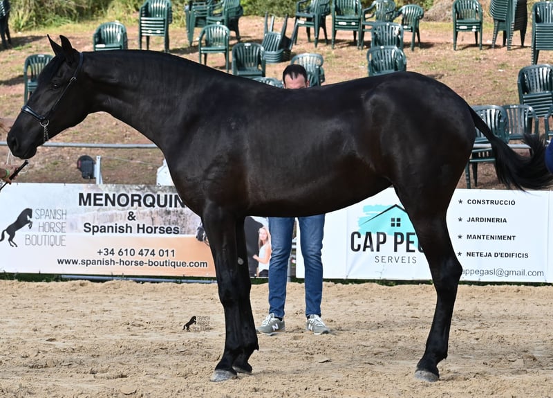 Esta yegua menorquina nacida en 2023 es, sin duda, una representante exclusiva de la raza de un hogar excepcional. Su padre es uno de los tres sementales ELITE de la raza, que transmite tanto buen movimiento como tamaño, y se espera que esta joven dama alcance una altura final de alrededor de 165 cm. Su madre proviene de líneas muy antiguas del Menorquín, que son conocidas por producir caballos resistentes y trabajadores. Este joya de potranca fue presentada en la feria de cría de Menorquín de este año, y por lo tanto ya está muy familiarizada con el trabajo de lunging con cabezada, estar en nuevos lugares, es muy tranquila para cargar (incluso en un remolque doble, cuando tiene que entrar como segunda), conoce el cuidado de los cascos y, por supuesto, los fundamentos de ser cepillada y bañada. Vive 24 horas en un sistema de cría robusta en muchas hectáreas de terreno en un grupo de yeguas de todas las edades, lo que la ha socializado y educado de manera excelente. ¡La crianza ideal! También conoce el establo, por si alguna vez necesita entrar. En su frente tiene una estrella que esconde bajo su crin. Tradicionalmente española, está esquilada como yegua, pero por supuesto, la crin volverá a crecer si no se corta más. Precio acorde a la calidad. Videos y pedigree disponibles a solicitud. Su ubicación es Menorca. Con gusto organizaré una revisión veterinaria de potros en el lugar, transporte o incluso su viaje, en caso de que desee venir a verla personalmente. Detalles en mi página o en conversación. Saludos desde España.