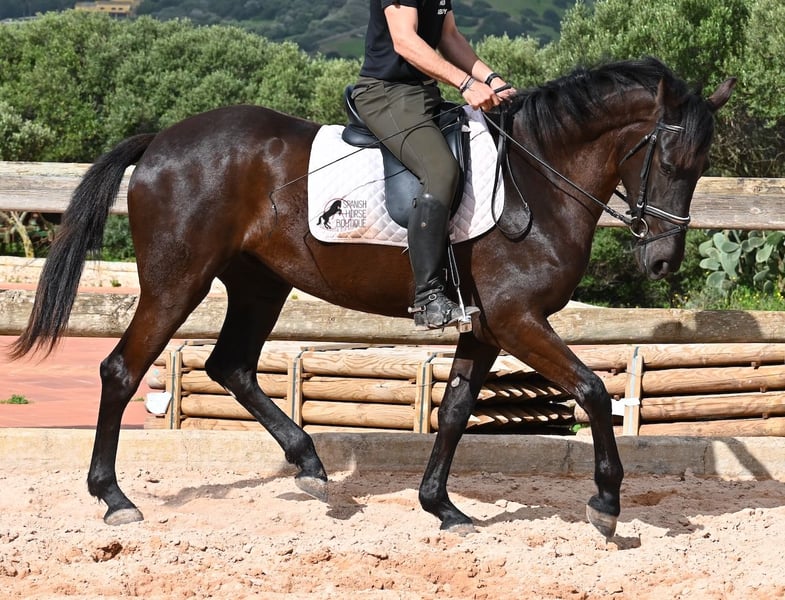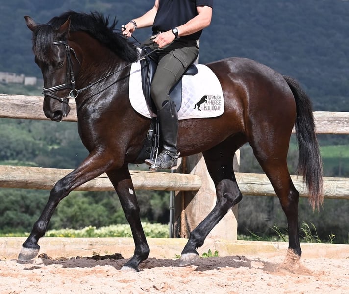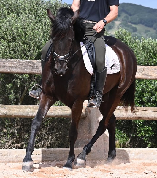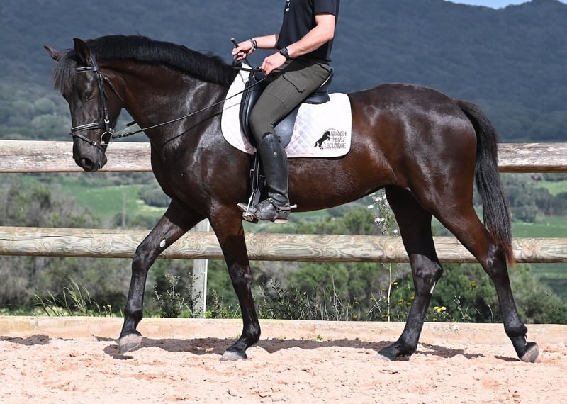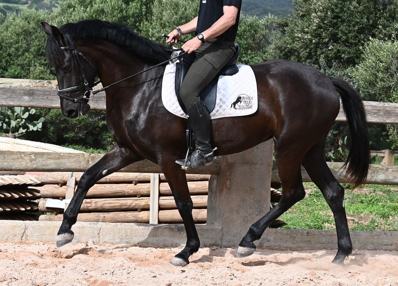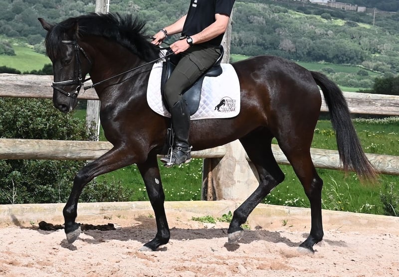 This purebred Menorcan mare, born in 2021, stands at 165cm, making her not only very tall for her age but also possessing a correspondingly big heart! She is an utterly charming, sweet mare, deeply relaxed in the typical Menorcan way, and couldn't be more agreeable. In handling, she is a heart of a horse, and under saddle, she always aims to please her rider. Due to her size, she was given a bit more time to grow, so she was only introduced to the rider in winter 2024 and is now being gently further trained. She is eager and absolutely well-behaved, as if she has been a riding horse for years. Her training level corresponds to that of a young horse, so sometimes she still follows her nose for a few steps, but she is increasingly accepting contact and learning to carry herself more. She goes barefoot without issue, was raised in a herd in robust conditions, and has been stabled since the start of her training. She is approved for breeding but has not yet had any offspring. However, if you wish to breed a foal from her, that option is available. Even though her veins carry the old lines of the Menorcan, where horses were not as tall and more baroque, she is very athletic and will still grow a few more centimeters! There is an option for training in the English style or Horsemanship on-site! She is currently located in Menorca! Videos and pedigree available upon request. I am happy to organize a vet check, training, transport, or even your trip if you wish to visit her personally. Details are available on my page or in conversation. Greetings from Spain