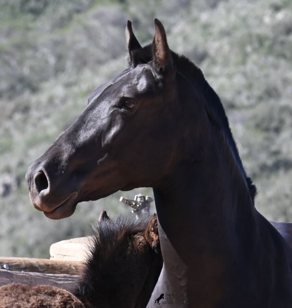 This 2018-born, purebred Menorquin mare lives the classic mare life on Menorca! According to tradition, only the stallions are ridden, and the mares live in herds on many hectares of land, enjoying life. If they are good mares, like her, they are also allowed to become mothers. She is therefore NOT ridden. Her magnificent foal from this year is NOT for sale but should still be shown so that her quality as a mother mare can be assessed. ;) The mare stands at 153 cm, which is not too tall, but she is beautifully baroque and well-built. Her foal at foot is now the second she has had, so it is still uncertain whether her foals will grow much larger as adults. She carries very old lines of the Menorquin that are increasingly disappearing, so it is wonderful that she contributes to the preservation of these original lines. She has been covered by a Menorquin stallion over 170 cm tall, who has Recomendado status for his performance at the breeding show and at local Doma Menorquina competitions. Without a doubt, a high-quality foal is growing in her belly, and for the price of one, you will have two in a few months. ;) The mare can also be transported without any issues while in foal! Of course, at her age, she can still be started under saddle. She is currently located in Menorca! Videos and pedigree available upon request. I would be happy to organize a veterinary check, training, transport, or your visit to see her in person. Details can be found on my page or discussed in conversation. Greetings from Spain!