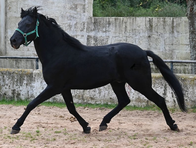 Dieser 2017 geborene, reinrassige Menorquinwallach, ist mit seinen 159cm Stockmaß, schön kompakt. Dieses kompakte Exterieur, lässt er besonders vor der Kutsche zur Geltung kommen, wo er sowohl einspännig, als auch mehrspännig gefahren wird! Er ist pechschwarz, ohne ein weißes Abzeichen und das macht ihn so richtig elegant als Fahrpferd. Sein Ohrenspiel zeigt, wie aufmerksam er ist und nicht nur auf die Zügelführung, sondern auch auf die Stimme des Fahrers, reagiert. Unterm Sattel ist er hauptsächlich im Gelände geritten, hat also nicht viel Ausbildung im Viereck was Lektionen betrifft, ist dafür aber ein ideales Freizeitpferd für alle, die gerne rausgehen oder selber noch ausbilden möchten, denn er wäre mit seinem Körperbau auch für die Working Equitation interessant. Im Umgang lässt er manchmal den Schelm durchblicken, ist aber absolut liebevoll dabei! Er geht problemlos barhuf, auch auf den felsigen Ausreitwegen Menorcas. Preis entsprechend der heutigen Kategorie des Menorquin, der vom Aussterben bedroht ist und eine Seltenheit! Sein Standort ist Menorca. Videos und Abstammung gerne auf Anfrage. Gerne organisiere ich vor Ort eine AKU, Beritt, Transport oder auch ihre Reise, sollten Sie persönlich zum Anschauen kommen. Details dazu gerne auf meiner Seite oder im Gespräch. Saludos aus Spanien