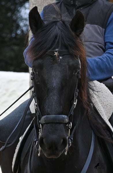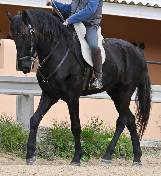 Questo stallone Menorquino, nato nel 2017, di razza pura, è un compagno molto tranquillo e affettuoso. Attualmente è castrato chimicamente (con iniezione), ma sarà sottoposto a castrazione chirurgica entro metà gennaio 2026, diventando così completamente stallone anche dal punto di vista fisico ;) Già si cerca una nuova sistemazione, poiché a fine febbraio sarà completamente guarito e pronto per il viaggio. Vive in stabulazione robusta 24 ore su 24, cammina sempre senza ferri, anche durante le feste! È molto rilassato nel suo approccio e anche sotto la sella, anche con altri otto cavalli, rimane sempre vicino al suo cavaliere, e spesso si rivolge con un orecchio al suo conduttore durante la monta. La sua formazione si è svolta nella locale Doma Menorquina, che viene condotta con un’unica mano! Preferisce l’ambiente naturale, arrampicandosi sui sentieri rocciosi, entrando in mare, affrontando senza paura il traffico stradale, sia da solo che in gruppo. Oltre al suo carattere dolce, tranquillo e amichevole, con un’altezza al garrese di 165 cm, rappresenta anche un’ottima scelta come cavallo da famiglia. A parte una stella ben nascosta sotto la criniera e un piccolo marchio bianco sul bordo della corona di una delle zampe posteriori, è completamente nero e, vivendo all’aperto, ha un buon manto invernale! La sua sede è a Minorca. Video e genealogia disponibili su richiesta. Organizzo volentieri un’ecografia, addestramento, trasporto o anche il vostro viaggio, se desiderate venire di persona a vederlo. Per dettagli, consultate il mio sito o contattatemi direttamente. Saluti dalla Spagna