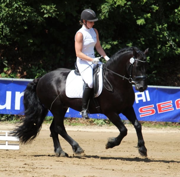 Unser 11jähriger gekörter Merens Zuchthengst steht auch dieses Jahr der Stutenwelt zum decken zur Verfügung. Kiano ist ein menschenbezogener, charakterstarker und motivierter Sportpartner. Er hat bereits Siege und Platzierungen der Klasse A vorzuweisen und wurde auch schon in der Klasse M vorgestellt. Im Training wurde mit M-Lektionen begonnen. In der täglichen Arbeit zeigt er sich sehr leichtrittig, fein an der Hand und ist immer motiviert und lernwillig. Er geht brav alleine und mit anderen Pferden ins Gelände. Diese Eigenschafften und seine Coolness gibt er auch an seine Nachkommen weiter. Seine dreijährige Tochter steht auch hier vor Ort, so das sich bei Interesse gerne ein Bild gemacht werden kann. Kiano deckt nur im Natursprung, daher ist eine aktuelle Tupferprobe erforderlich. Da wir nicht regelmäßig am Rechner sind, bitten wir um telefonische Kontaktaufnahme unter 0172/6052531.