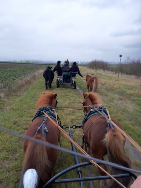 Met pijn in ons hart zoeken wij voor onze kleine Gustav een liefdevol en stimulerend nieuw thuis. Gegevens over Gustav: • Geboren op 1 mei 2011 • Stockmaat: 80 cm • Mini Shetland hengst • Kleur: vos • Groene pas en eigendomsbewijs aanwezig Gustav is een heel bijzonder ventje – vriendelijk, charmant en met een geweldig karakter. Bij ons kwam hij eerder over als rangnederig en sociaal in de kudde. Hij woont momenteel in een paddock met 24/7 hooi, maar kent ook de box voor de nacht. ✨ Zijn talenten & opleiding: Gustav is bij ons academisch getraind en is zowel enkel- als dubbelspant gereden. Vanwege zijn formaat is hij niet bereden. Hij liep betrouwbaar voor de wagen, ook in aanwezigheid van merries – altijd braaf en goed te hanteren. Hij brengt een evenwichtig, nieuwsgierig karakter mee – hij test soms speels grenzen, maar blijft altijd eerlijk en vriendelijk. Wij zien in hem zeker ook potentieel voor therapeutisch werk, omdat hij een gevoelig en liefdevol pony is dat graag samenwerkt met mensen. Wij zoeken voor Gustav: Een thuis waar hij geliefd, begrepen en gestimuleerd wordt. Mensen die paardenkennis, tijd en hart voor de zaak hebben en weten dat een Mini Shetland net zoveel aandacht nodig heeft als een groot paard. Niet geschikt voor: ❌ Handelaren ❌ Paardenscholen ❌ Pure kinderpony's voor vermaak – Gustav is meer dan dat. ✅ Plaats gaat voor prijs. Het is ons belangrijk dat het voor Gustav klikt – niet wat er op het bankafschrift staat. Indien gewenst, kan Gustav ook wat accessoires meenemen. Bij serieuze interesse horen we graag een berichtje waarin jullie jezelf en de mogelijke nieuwe thuis van Gustav kort voorstellen. Gustav wacht – op mensen die zijn grote hart weten te waarderen.