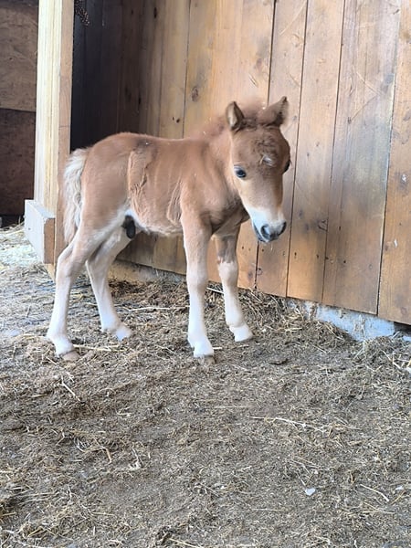 For sale: Miniature Shetland Pony Stallion This charming Miniature Shetland Pony stallion, born in 2025, is available for purchase. Standing at 24 inches (60 cm) at the withers, he is the perfect companion for both children and adults. His beautiful Palomino coat makes him a real eye-catcher. He comes from a responsible breeding program and is characterized by his friendly nature and curiosity. Well-socialized, he has already gained some initial handling experience with people. Whether as a loving family member, for breeding purposes, or as a loyal playmate – this Miniature Shetland Pony is sure to bring a lot of joy. If you are interested or have any further questions, please feel free to contact me. Visit us and see this wonderful pony for yourself!