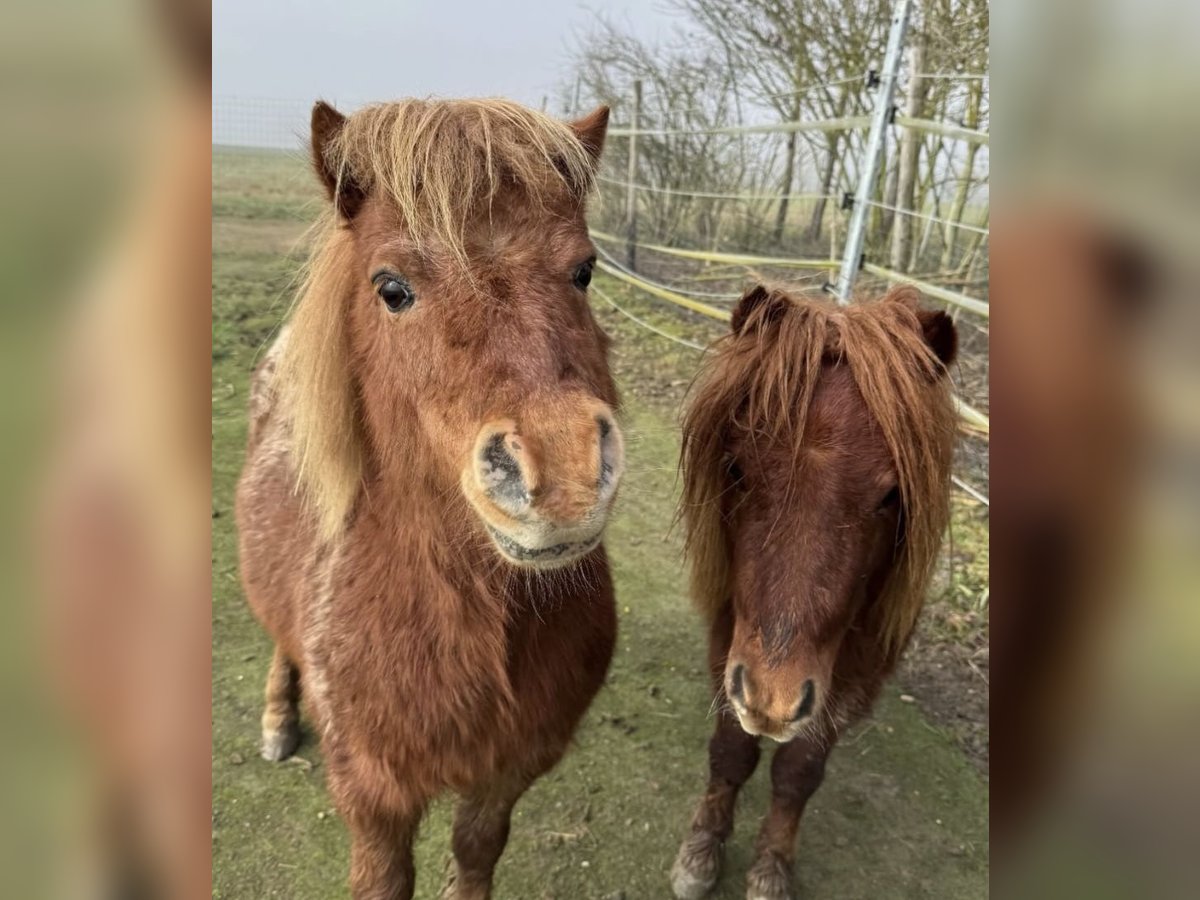Mini Shetland Pony – Hengst, geb. 2023 Dieses entzückende Mini Shetland Pony ist der perfekte Begleiter für die kleine Familie oder den erfahrenen Ponyliebhaber, der ein charmantes und robustes Freizeitpony sucht. Der junge Hengst wurde im Jahr 2023 geboren und besticht durch sein freundliches Wesen und seine kompakte Größe. Mit einem Stockmaß von nur 75 cm ist er ideal für Kinder und Einsteiger, die den Umgang mit einem Pony in einer sicheren und liebevollen Umgebung erlernen möchten. Sein dunkelfuchsigfarbenes Fell verleiht ihm ein besonders ansprechendes Erscheinungsbild und macht ihn zu einem echten Blickfang. Trotz seiner geringen Größe verfügt er über eine robuste Konstitution und ist bestens geeignet für den Freizeitbereich. Er wurde liebevoll aufgezogen und ist bereits gut geritten sowie vertraut mit den alltäglichen Handhabungen. Dieses Mini Shetland Pony ist ein zuverlässiger Partner für alle, die ein kleines, aber feines Freizeitpony suchen. Es ist eine wunderbare Gelegenheit, einen jungen, gut erzogenen Hengst in einer liebevollen Umgebung zu erwerben. Für weitere Informationen oder einen persönlichen Eindruck freuen wir uns auf Ihre Kontaktaufnahme. Am liebsten würden wir Freddy zusammen mit seinem Kumpel Spotty vermitteln siehe andere Anzeige. Dann ist der Preis auch absolut nebensächlich. Verschenkt werden die zwei aber nicht.