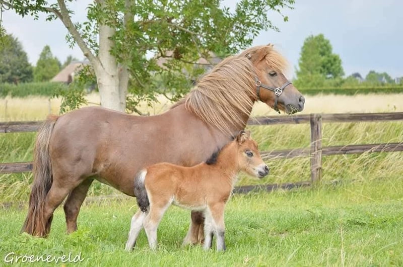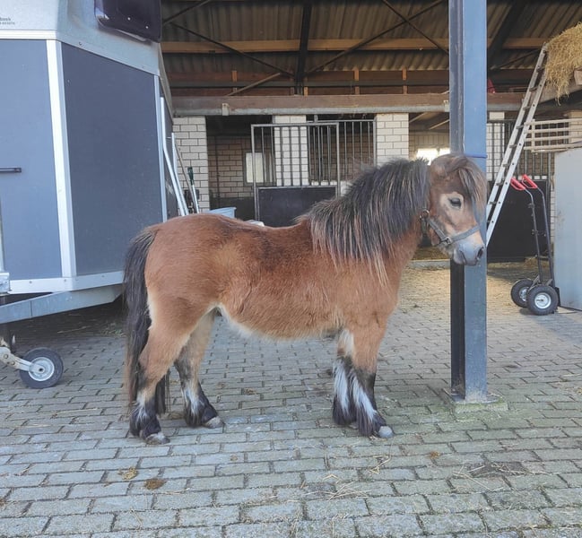 Ønske v.d. Moirtakker Vader: Herbert v.d. Viersprong Moeder: Hyske v.d. Moirtakker Moeder's vader: Sieger v. Vries Geboren: 01-07-2020 Geslacht: Merrie Hoogte: +/- 89 cm Ønske is een kastanjebruine 5-jarige NSPS merrie met goede papieren & opgenomen in stamboek (+ enter jeugdkampioen). Ze heeft een nieuwsgierig, leergierig & lief karakter. Toen ze bij mij kwam, was ze nog erg groen, inmiddels is ze bekend met grondwerk, longeren, werken ad hand, vrijheidsdressuur & de beginselen voor het mennen. Ik zoek voor haar ook iemand die actief met haar aan de slag wilt, want dat vind ze leuk! Zou ook erg goed & leuk zijn voor de fok, heeft het afgelopen jaar met mijn eigen gefokte veulen gestaan & deed dit erg goed. Ze is vrij van hoefbevangenheid & eczeem. Gaat om de 8 weken braaf naar de bekapper, gebit is (begin) dit jaar nog gedaan. Enting pas gehad.