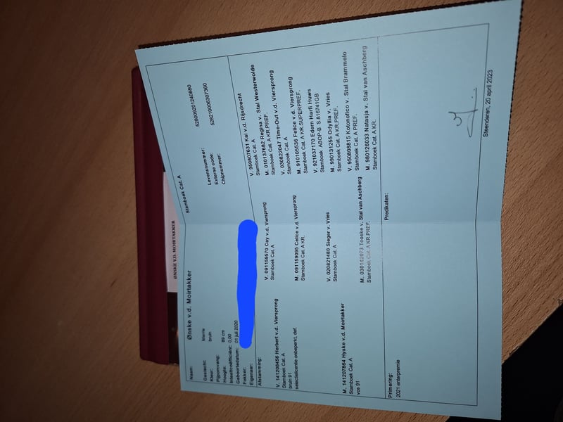 Ønske v.d. Moirtakker Vader: Herbert v.d. Viersprong Moeder: Hyske v.d. Moirtakker Moeder's vader: Sieger v. Vries Geboren: 01-07-2020 Geslacht: Merrie Hoogte: +/- 89 cm Ønske is een kastanjebruine 5-jarige NSPS merrie met goede papieren & opgenomen in stamboek (+ enter jeugdkampioen). Ze heeft een nieuwsgierig, leergierig & lief karakter. Toen ze bij mij kwam, was ze nog erg groen, inmiddels is ze bekend met grondwerk, longeren, werken ad hand, vrijheidsdressuur & de beginselen voor het mennen. Ik zoek voor haar ook iemand die actief met haar aan de slag wilt, want dat vind ze leuk! Zou ook erg goed & leuk zijn voor de fok, heeft het afgelopen jaar met mijn eigen gefokte veulen gestaan & deed dit erg goed. Ze is vrij van hoefbevangenheid & eczeem. Gaat om de 8 weken braaf naar de bekapper, gebit is (begin) dit jaar nog gedaan. Enting pas gehad. Vraagprijs: €850-€1000. Evt samen naar een 💛-huisje met mijn andere pony: https://www.ehorses.nl/shetland-ponys-merrie-1jaar-84-cm-palomino-recreatiepaard-fokpaard-gouderak/4684100.html voor €1650,00.