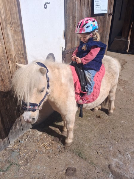 Die kleine Ria von Wolfachtal, liebevoll Mariechen genannt, sucht einen neuen Möhrchengeber! Mariechen hat volle Papiere und ist für die Zucht hochinteressant! Sie ist ein wunderschöner Palominoschecke mit edlem Gesicht. Ihre Gänge sind für ein Shetty sehr raumgreifend. Sie ist 85 cm hoch und wird hier von meiner 6 jährigen Tochter gerne geritten. Wir haben sie im Sommer 25 angeritten, durch das Wetter hatte sie etwas Pause. Das Mariechen wird im April 9 Jahre alt. Beißen und treten sind für das Mariechen Fremdwörter. Sie ist eher schüchtern und sensibel und braucht etwas, um ihrem Menschen zu vertrauen, daher wünschen wir uns für sie auch eine einheitliche Bezugsperson. Wechselnde kleine Reiter findet sie ok. Für mehr Infos gerne PN!