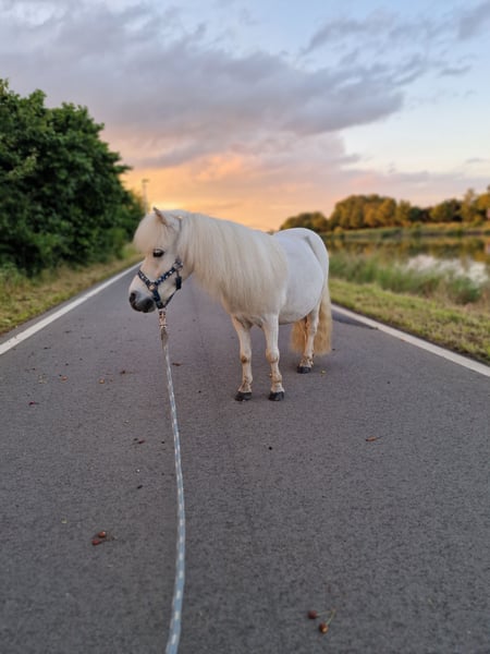 Schweren Herzens habe ich mich dazu entschieden, mein Minishetty in beste Hände abzugeben, da meine Zeit leider nicht mehr für ihn ausreicht. Bobby ist ein 14 jähriger, 85cm großer Wallach. Er ist sehr verträglich und kennt es in gemischten und reinen Wallachherden mit Shettys und mit Großpferden zu stehen. Er steht zurzeit im Offenstall, hat sich aber auch in der Box mit Paddockgang wohl gefühlt. Bobby ist gesund und hatte noch nie Hufrehe. Allerdings sollte er nicht zu viel Gras bekommen, da er sehr leichtfuttrig ist. Bei einer schlechteren Heuqualität hat er in der Vergangenheit Husten gezeigt. Momentan bekommt er ohne Schwierigkeiten Heu und verträgt auch trockene Heulage gut. Bobby ist sehr gut ausgebildet und arbeitet gerne an der Doppellonge oder „normalen“ Longe. Er kann außerdem viele Zirkustricks wie hinlegen, steigen, spanischen Schritt, seitwärts in allen Gangarten, etc. Er hat auch viel Spaß an der Freiarbeit. Bobby ist eingefahren. Er hatte vor ein paar Jahren einen kleinen Unfall und ist seitdem nicht mehr vor der Kutsche gelaufen. Diesen Winter hat er einen Schlitten gezogen und hatte damit keine Probleme. Er ist nicht geritten, es haben bisher nur leichte Kinder auf ihm gesessen. Er ist Schmiede- und verladefromm. Videos von ihm sind auf dem TikTok Account seiner Pflegebeteiligung zu sehen (lolo.crazyhorse). Ich wünsche mir für ihn ein artgerechtes 5 Sterne Zuhause. Zubehör wie Hufschuhe, Decken, Halfter, Kappzaum, etc. kann gerne gegen Aufpreis mitgegeben werden. Besichtigungen sind kurzfristig möglich. Bei weiteren Fragen meldet euch gerne