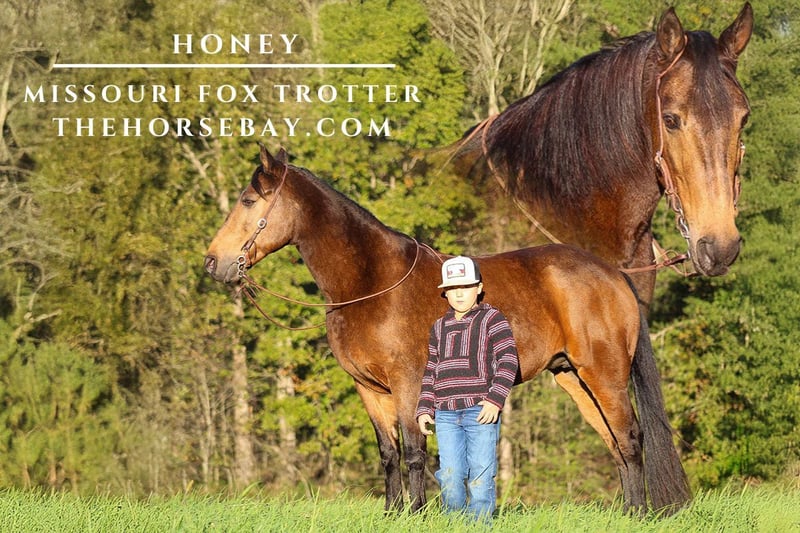 OPEN BIDDING ON THEHORSEBAY,COM. SALE ENDS ON 10/30 @ 4PM CT. More information is available on the website, including an UTD vet inspection, Coggins, video, images, and the owner's contact information to ask questions, request information, or make arrangements to come to visit. Honey is a BEAUTIFUL 9-year-old Missouri Fox Trotter, standing 14.2 hands tall and made like a quarter horse. She is the unicorn, kind, gentle, and easygoing! Honey has been owned most of her life by an avid trail-riding family until we purchased her for our son. He has raised her more than most horses get in a lifetime while she has been here. Honey has been trail-ridden, driven in the buggy, tested, and proven to be the same every time you get on her. Honey rides double, bareback, and with or without a bridle. If you are looking for that unicorn type for almost any level rider, she will fit your bill! She is what I call honest! Honey is an easy keeper and has no vices that we have found, and also has excellent barn manners. Honey is easy to be around and has a loving personality. She is looking for a forever-riding partner because that’s what she deserves. If you are looking for the same, she is the one for you!
