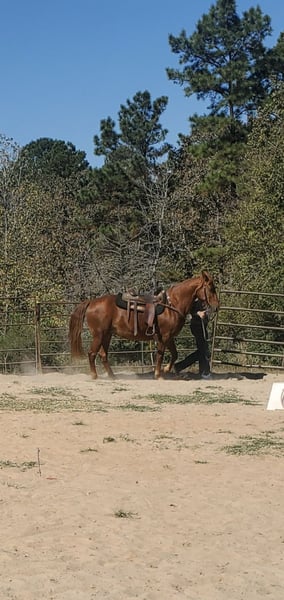 Missouri is a stunning 12 year old mare. She stands 15.1 hands tall and weight around 1200 lbs. She has a smooth, flowing gait that makes every ride unforgettable. She's done countless trail rides and has spent time gathering cattle. She is beautifully neck reined and doesn't spook. She will meet you at the gate, ready for the next adventure.