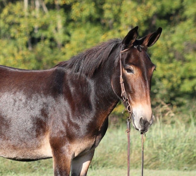 ONLINE AUCTION Place your bids at www.PlatinumEquineAuction.com Starting Bid $3500 Auction ends October 13th, 2024 Need a new saddle? Check out White Rock Saddles on our website or Facebook! Take a look at Abby who is a one of a kind mule! Abby stands around 15h, she is a 11 years old and is a Mare mule. Abby truly is a do it all kind of mule! She has been camping and riding in several states, she knows all about those rough rocky trails and knows how to handle herself. She has been on the steepest slopes, in deep creeks, over downed trees, and over all types of rough terrain while still being sure footed. She has been rode in traffic, and is very traffic safe around cars, semi, log, and dump trucks. Abby has been ridden around the ranch. She has herded and sorted calves. Abby has been roped/doctored off of as well. If you need a smooth ride that won’t hurt your back??? Then look no further as Abby has a smooth gait and can really cover the ground when asked! She will lope off good and takes her leads. She does great out in the pasture with our mixed herd. She has a great attitude about whatever she is asked to do. Whether its trails or ranch work, Abby will get the job done! Feel free to call Lucky 13 Equine Lysandra 765-717-2041 with any questions. Located in Brodhead, KY. ONLINE AUCTION Place your bids at www.PlatinumEquineAuction.com Starting Bid $3500 Auction ends October 13th, 2024 Need a new saddle? Check out White Rock Saddles on our website or Facebook!