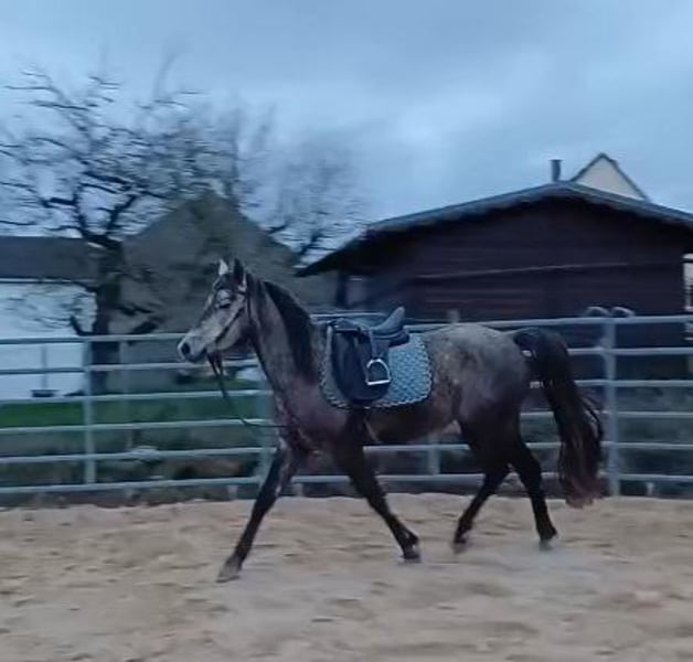 Vegas Aces Ivy TFR born 28.03.2024 is a curious, trusting and self-confident filly. Already on the 3rd day she showed a high quality ground covering and tactful flat foot walk, see the publicly available videos on Facebook https://www.facebook.com/taunus.foxtrotter/videos/8338732702820260 Her sire is the top Missouri Fox Trotter breeding stallion Gunslingers Velvet Vegas in Europe (best licensed, stallion performance tested and most used breeding stallion in the special breeding association for Missouri Fox Trotters). The dam was bred by the 8-time world champion in the USA. Horses from this mating are suitable for leisure, breeding and competitions. The price is fixed until weaning in the fall. She will be sold with an American registration and a purple breeding passport from the European Specialized Breeding Association for Missouri Fox Trotters. The photo shows Ivy at the age of 10 hours. Estimated final height 155 cm.