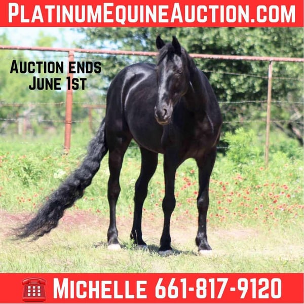 ONLINE AUCTION Place your bids at www.PlatinumEquineAuction.com Starting Bid $3500 Auction ends June 1st, 2025 Need a new saddle? Check out White Rock Saddles on our website or Facebook! Meet Da Vinci, the epitome of calm, cool, and collected! This fabulous 8-year-old gaited black gelding stands at a charming 14.3 hands and truly lives up to his name—he’s as pretty as a picture and shines like a brand-new coin. Da Vinci is the sweetest guy you’ll ever meet, and he absolutely loves hitting the trails! Whether you want to take it slow and let him collect his head or stroll down a scenic path, he’s happy to oblige. He’s as smooth as Tennessee whiskey. This adventurous horse can tackle any trail or hill you throw at him, and he doesn’t shy away from crossing streams or splashing around in the water to cool off. He’s even strutted his stuff around the famous Fort Worth Stockyards, turning heads with his stunning long tail flowing behind him. Everyone who sees him can’t help but smile! What’s more, Da Vinci is user-friendly and gets along with everyone. No matter who’s riding him, he’ll leave a smile on their face! You can leave him off for a bit, and when you get back on, he’ll be just the same trusty horse you left behind. This fancy fellow is sure to get you noticed wherever you go! With a heart as big as Texas, Da Vinci is an absolute gentleman from the ground to his back, always giving you 100%. I guarantee his new owners will fall in love with him just like we have and will truly enjoy every moment spent with this amazing horse. Come meet Da Vinci and see for yourself! If you can’t make it to see him that’s ok because we offer FaceTime showings. If you need help with transport don’t hesitate to ask we have a list of reputable haulers that can get him safely to your doorstep WORLD WIDE including, Alaska , Mexico, Hawaii and Canada From our location in Stephenville, TX. Contact M$ Performance Horses Michelle 661-817-9120 with any questions. ONLINE AUCTION Place your bids at www.PlatinumEquineAuction.com Starting Bid $3500 Auction ends June 1st, 2025 Need a new saddle? Check out White Rock Saddles on our website or Facebook!