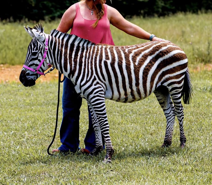 ONLINE AUCTION Place your bids at www.PlatinumEquineAuction.com Starting Bid $3500 Auction ends July 7th, 2024 Need a new saddle? Check out White Rock Saddles on our website or Facebook! You are bidding on the pair for 1 price (the final bid gets both zebras). Smiley and Stripes! Two male zebras that are a year and a half old! They were bottle babies! Super sweet, gentle, easy to handle, and super easy to catch! They have been around horses, ponies, goats, cattle, dogs,cats and kids! They love treats and love to be loved on! Stands for bath time! Easy to lead and have been played with by an 8 year old daily! And the whole neighborhood! They have also been used for photo shoots! Located in Mt. Hope, AL. Contact Brittany Little 256-221-4334. ONLINE AUCTION Place your bids at www.PlatinumEquineAuction.com Starting Bid $3500 Auction ends July 7th, 2024 Need a new saddle? Check out White Rock Saddles on our website or Facebook!