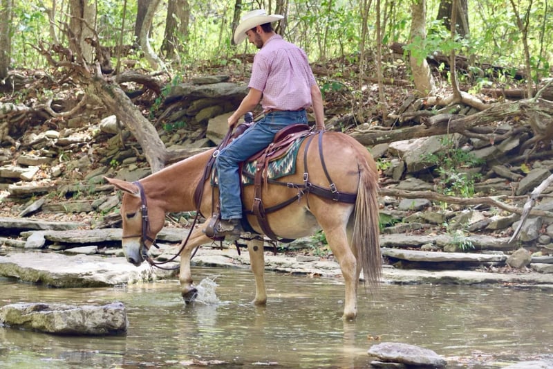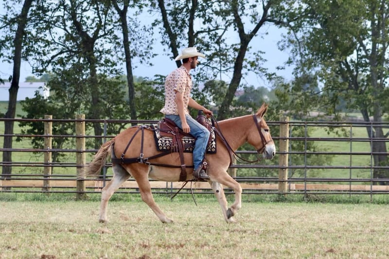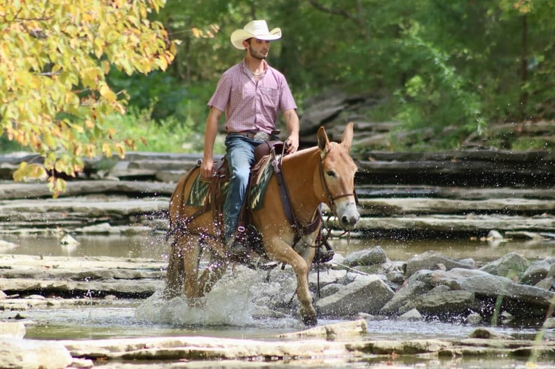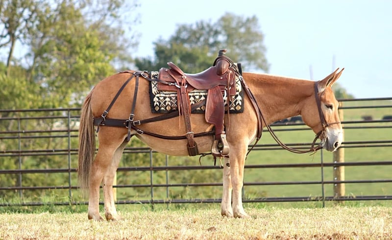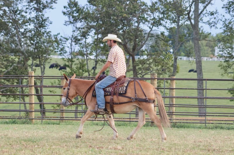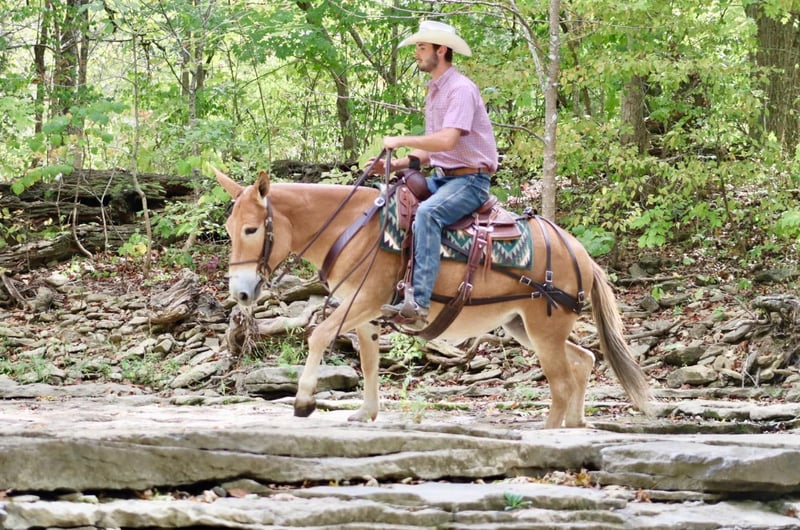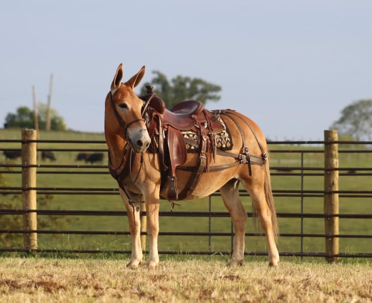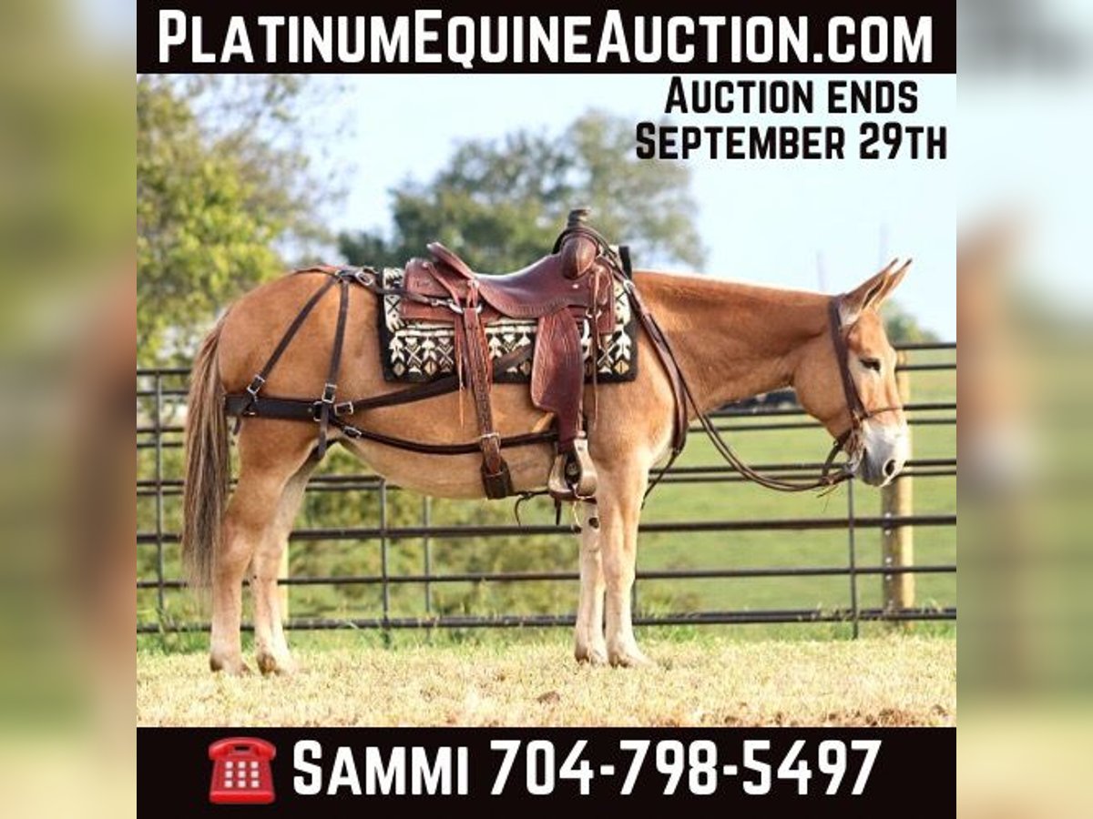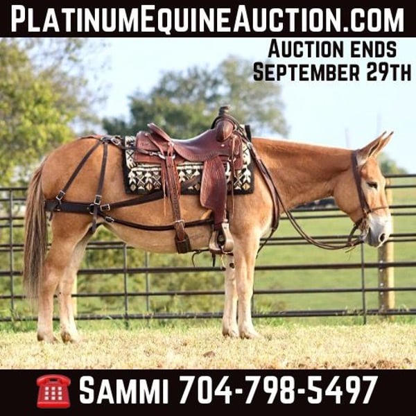 ONLINE AUCTION Place your bids at www.PlatinumEquineAuction.com Starting Bid $3500 Auction ends September 29th, 2024 Need a new saddle? Check out White Rock Saddles on our website or Facebook! Eleanor is a 9 year old, 14 hand Molly mule. I don’t think there are enough good things to say about her. She is very stocky and stout and has no issues carrying larger adults all day long out on the trails or in the mountains. Safe, quiet, and gentle are three great adjectives for her. The next best one is gorgeous! When it comes to riding, she is a joy! She walks, jogs, and lopes. All three gaits are smooth and comfortable to ride. She is extremely happy to ride on a full drape. If you put her at a pace, she will stay there. She is a bit of a more “whoa than go” type of mule. She is not lazy and she does move forward easily, but she is happiest going and easier paces. Eleanor neck reins nicely and is light in the mouth. She has a nice stop on her, backs up, and side passes. You can open and close gaits on her. We like to use her as a little utility mule. We have dragged and moved bunk feeders with her, carried equipment around and ponied kids on ponies behind her. She is the ideal mule to gather a herd horses and mules on. She will cut back and forth and turn them back if needed. When the herd gets excited and gallops off, she stays quiet and will walk or jog behind them and not get excited. She does the same when gathering cattle. She isn’t easily excited. We’ve had the whole family on her with no issues. She stands well for the farrier. She doesn’t mind her mane being clipped, she stands quietly to tack and untack, loads and unloads easily, and overall has nice ground manners. Eleanor has been on lots of camping trips and does well tied out on the high line overnight. She is sure footed and confident on the trails. She will ride in a britchen or crupper. She also rides just as well in a halter and lead rope or bosal as she does with a bridle on. Eleanor is just an overall really nice mule that we love to have around and ride. For more information, call or text Sammi Waugh 704-798-5497 Located in Brooksville, KY. ONLINE AUCTION Place your bids at www.PlatinumEquineAuction.com Starting Bid $3500 Auction ends September 29th, 2024 Need a new saddle? Check out White Rock Saddles on our website or Facebook!
