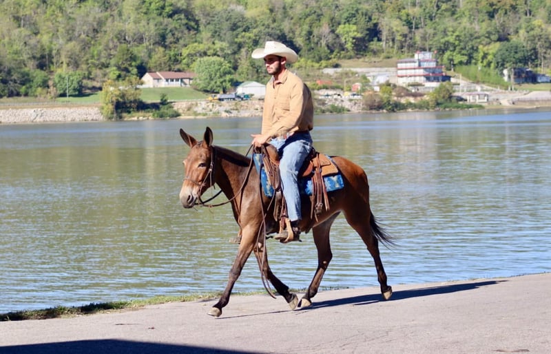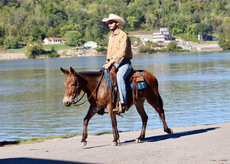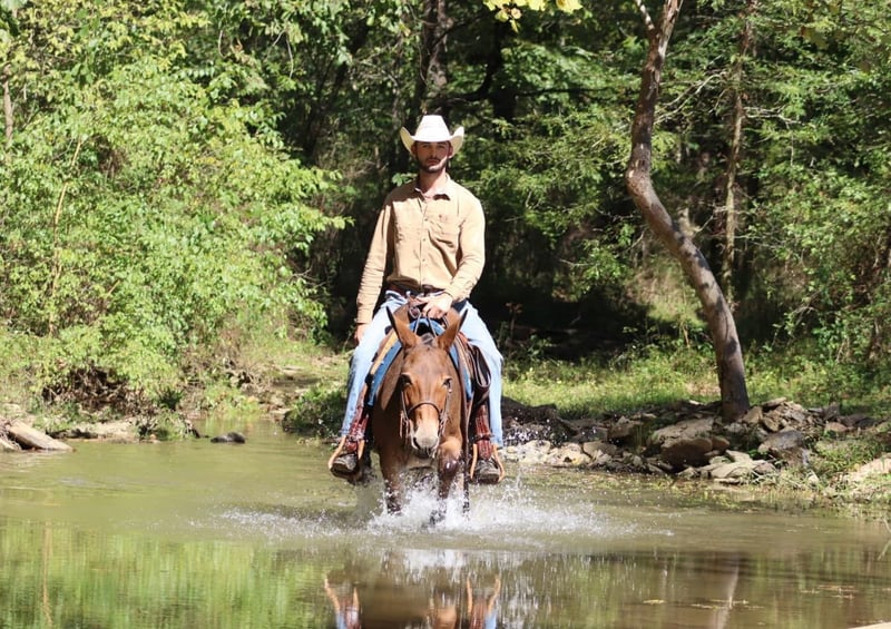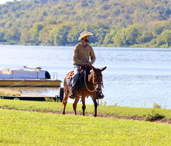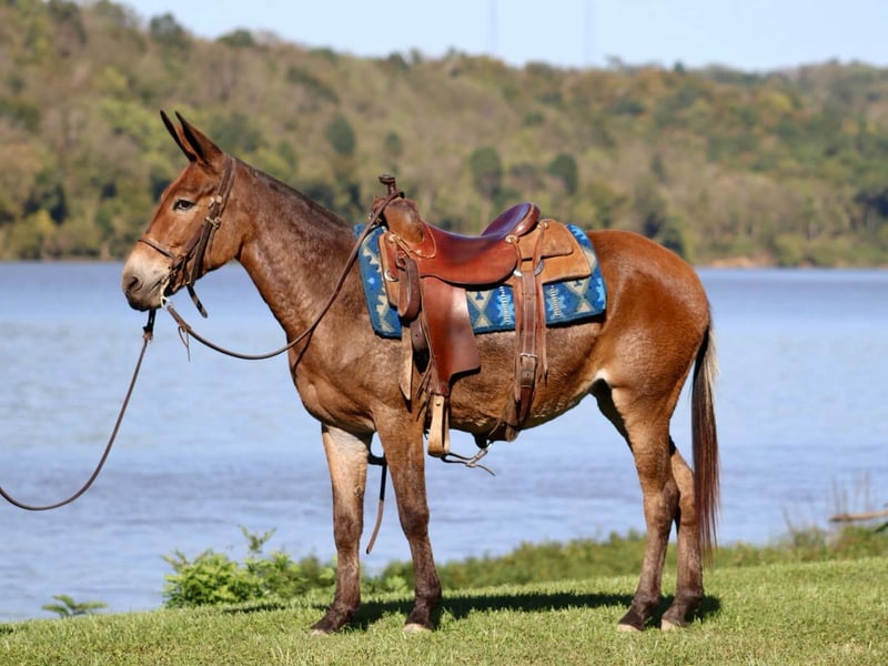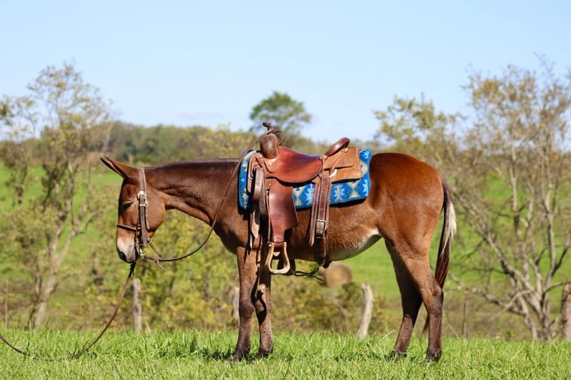 ONLINE AUCTION Place your bids at www.PlatinumEquineAuction.com Starting Bid $3500 Auction ends October 20th, 2024 Need a new saddle? Check out White Rock Saddles on our website or Facebook! Bella is a 10 year old, 13.3 hand Molly mule. Don’t let her pint size fool you, she can comfortably carry an adult all day long. One of our favorite things about Bella is her mountain goat abilities when out riding. No hill is too steep, no trail is too narrow. If there isn’t a path, Bella will blaze one. If you’re not the trail blazing type, she will happily cruise down wider, more user friendly trails. She walks, jogs, and lopes nicely across the pastures. Hop on and go check cattle or fences, she is game! Is coon hunting your thing? She is an experienced coon hunting mule. She’s comfortable riding out with the hounds and confident at night. Bella is traffic safe. She has ridden around cars, trucks, motorcycles, golf carts, strollers, and more! We have even had her at the local rodeos and fairs riding through the vendor areas. The bright lights and crowds don’t phase her. Her biggest quirk, is riding away from the trailer and leaving buddies behind, she will require a little extra encouragement from her rider to make sure you really want to leave everyone behind. Once you get headed down the trail though, she doesn’t have any issues even out alone. Don’t miss out on this cute and fun Molly mule! For more information, call Sammi Waugh 704-798-5497. ONLINE AUCTION Place your bids at www.PlatinumEquineAuction.com Starting Bid $3500 Auction ends October 20th, 2024 Need a new saddle? Check out White Rock Saddles on our website or Facebook!