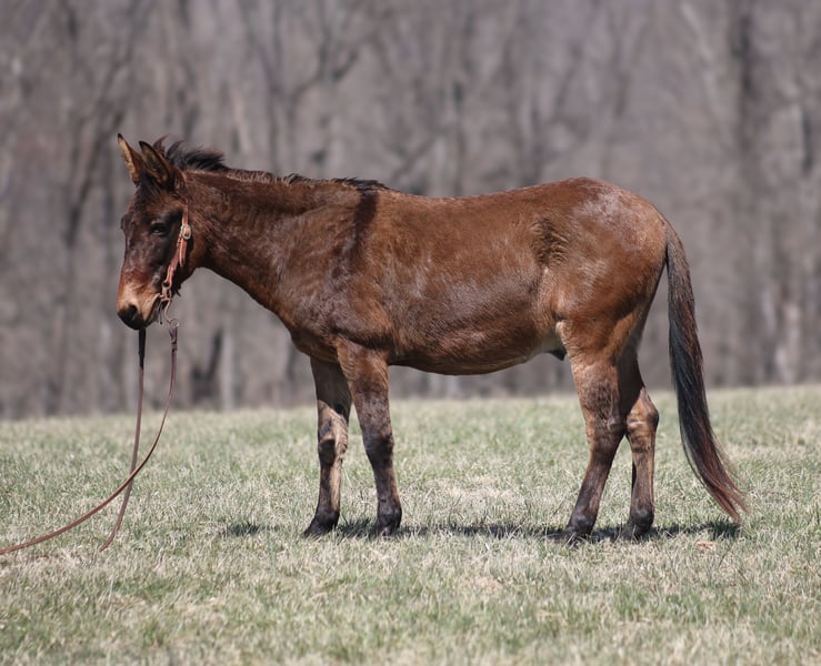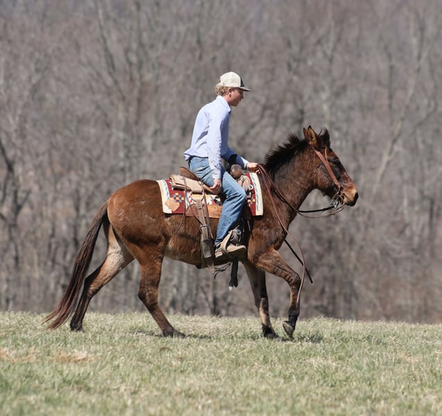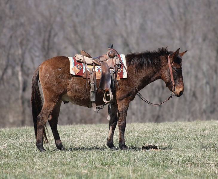 ONLINE AUCTION Place your bids at www.PlatinumEquineAuction.com Starting Bid $3500 Auction ends March 30th, 2025 Need a new saddle? Check out White Rock Saddles on our website or Facebook! Parker is a 13.2H, very stout built, 9 year old, Dun John Mule with Tiger stripes on his legs and he is one LAID BACK dude!!! Parker is quiet and gentle. He is great on trails, he rides through rough rocky terrain, dead fall, thick brush, deep water, you name it and Parker will go on through it while being surefooted. He has been used to coon hunt off of after dark, he has leg dogs and had guns shot off of his back. Parker is 100% content to just plod along slow and easy down the trails and is totally safe for timid or beginning riders. He is a great mule to help build someone’s confidence! Parker is safe on the highways and has been ridden around cows. I have started teaching him to lay down. He is easy to tack up, no issues with his ears or with his feet. Parker has been a joy to have around and he is sure to be a joy for his new family. Located in Brodhead, KY. Contact Moore Trained Horses Logan 765-265-0033 with any questions or to make a buy it now offer. ONLINE AUCTION Place your bids at www.PlatinumEquineAuction.com Starting Bid $3500 Auction ends March 30th, 2025 Need a new saddle? Check out White Rock Saddles on our website or Facebook!