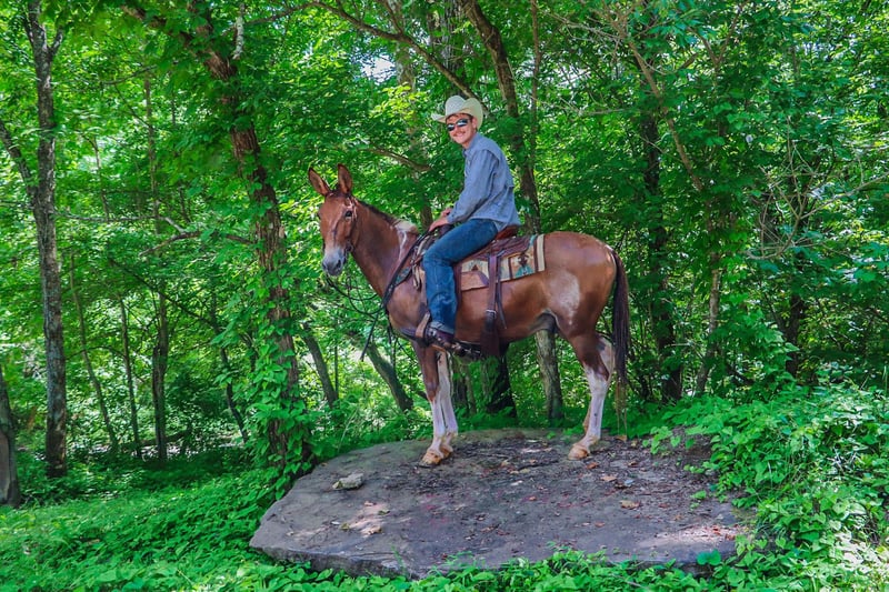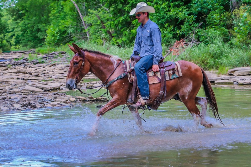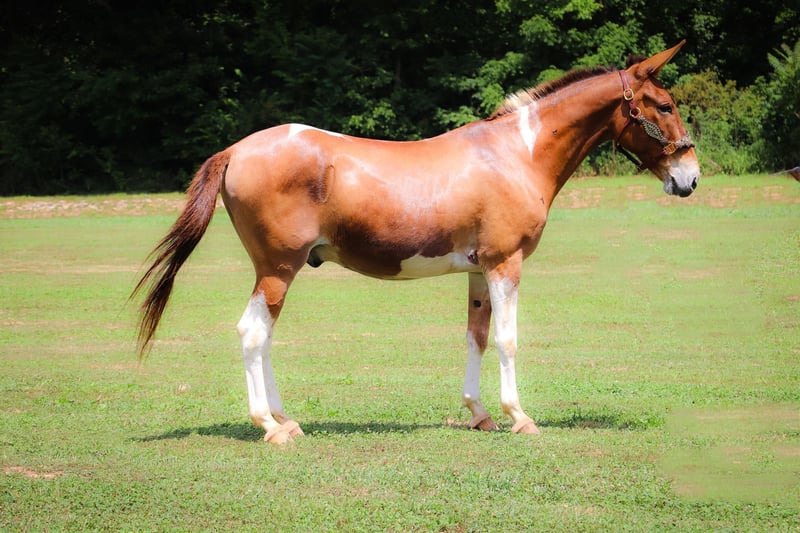 ONLINE AUCTION Place your bids at www.PlatinumEquineAuction.com Starting Bid $3500 Auction ends July 14th, 2024 Need a new saddle? Check out White Rock Saddles on our website or Facebook! This is “Daniel”, a true one of a kind RED DUN & WHITE JOHN MULE that is well trained, gentle, and civilized. This mule is 11 years old and stands 14.2 hands tall. He has a very large resume and has been there and done that. He has been ridden English and Western. He has been to the open shows and shown by a novice rider. He will collect up nicely and slow jog or he will move out into an extended trot. He is soft in the bridle and will break at the poll. He has been used for ranch work in the pasture sorting and pushing cattle by an older gentleman. He has been on the moonlit rides and is sure footed in rough country. He has been shot off of and used for hunting in the mountains. He has also been used to lead a pack string. He has an extremely comfy and easy to sit canter. He catches his leads, lopes circles, and stops nicely. He will back up, move off of leg cues, and he has a true one hand neck rein. He stands to mount, tack, and groom. He picks up all four feet and handles his ears with no issues. He takes his time in unsure footing, unloads in new territory and rides off quiet, and has no buck and no hump. This mule loads, bathes, hauls, and has the best ground manners. He rides out alone with confidence and will bring up the rear or lead the pack. He is traffic safe, good with dogs, and will go anywhere you point him without hesitation. He will ride bareback, double, and in just a halter and leadrope. Don’t miss out if you want a mule that will make you look like a mule skinner even if you aren’t. He’s obedient, kind, personable, and loves to trail ride. Contact HR Horses Erin 304-238-4155 with any questions or to set up a time to come see him in Flemingsburg, KY. BIN offers are considered. Thanks! ONLINE AUCTION Place your bids at www.PlatinumEquineAuction.com Starting Bid $3500 Auction ends July 14th, 2024 Need a new saddle? Check out White Rock Saddles on our website or Facebook!