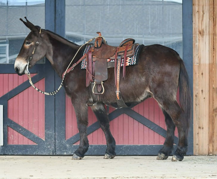 Betrouwbare, stevige en door en door gerijpte 13-jarige zwarte John-mule, geschikt voor rijden en tr