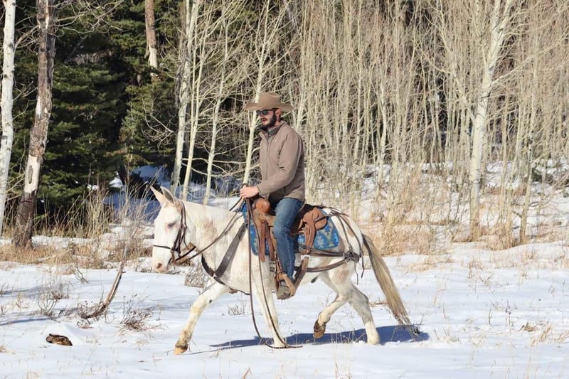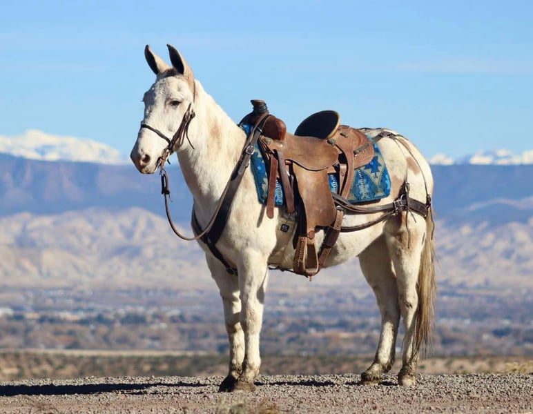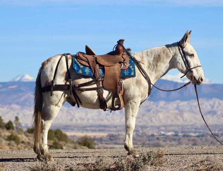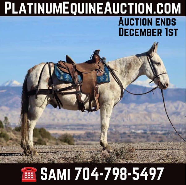 ONLINE AUCTION Place your bids at www.PlatinumEquineAuction.com Starting Bid $3500 Auction ends December 1st, 2024 Need a new saddle? Check out White Rock Saddles on our website or Facebook! Lil Johnny is an 11 year old, 14.1 hand dun paint John mule. Lil Johnny is a reliable mule that will safely get you through whatever type of trail or terrain you come across. He will gently crawl off rocks, he slides down banks with ease, and steps over deadfall like one should. He crosses creeks and steps over ditches. Lil Johnny rides out alone or with a group. He has a nice ground covering walk, smooth jog, and rocking chair lope. Most recently, we took him 3rd season elk hunting in CO. He does well tied out on the high line overnight. He has enough heart to ride in the rough country all week without letting you down. He shows up ready to ride every morning. Lil Johnny is a mule that you can rely on to get you where you need to go. For more information, please call Sammi Waugh 704-798-5497 Located in Brooksville, KY. ONLINE AUCTION Place your bids at www.PlatinumEquineAuction.com Starting Bid $3500 Auction ends December 1st, 2024 Need a new saddle? Check out White Rock Saddles on our website or Facebook!