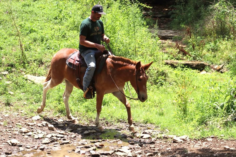 ONLINE AUCTION Place your bids at www.PlatinumEquineAuction.com Starting Bid $3500 Auction ends September 1st, 2024 Need a new saddle? Check out White Rock Saddles on our website or Facebook! Luna is a 12 year old, 15 hand Molly mule. She is excellent on the trails with countless miles ridden. If you point her nose, she will go. She crosses logs, slides down banks, goes through water with ease, and crosses bridges. For the more timid riders, she will follow along with the group and not take a misstep. We have had kids trail riding her and several first time riders that she gave confidence to on the trails. She is traffic safe and has been ridden on the roads. She also does well night trail riding. Headlights and flashlights don’t scare her. Luna won’t be the fanciest broke ranch mule, but she is an honest and safe trail riding mule. We trust her with the kids and any inexperienced guest that wants to ride with us. She rides the same in all situations whether on the trail, down the road, or around camp. She loads and trailers well. She stands for saddling and mounting and is good with the clippers. Luna is an all around really nice mule! For more information, please call Sammi Waugh 704-798-5497 Located in Brooksville, KY. ONLINE AUCTION Place your bids at www.PlatinumEquineAuction.com Starting Bid $3500 Auction ends September 1st, 2024 Need a new saddle? Check out White Rock Saddles on our website or Facebook!